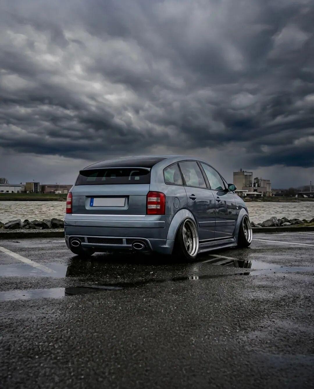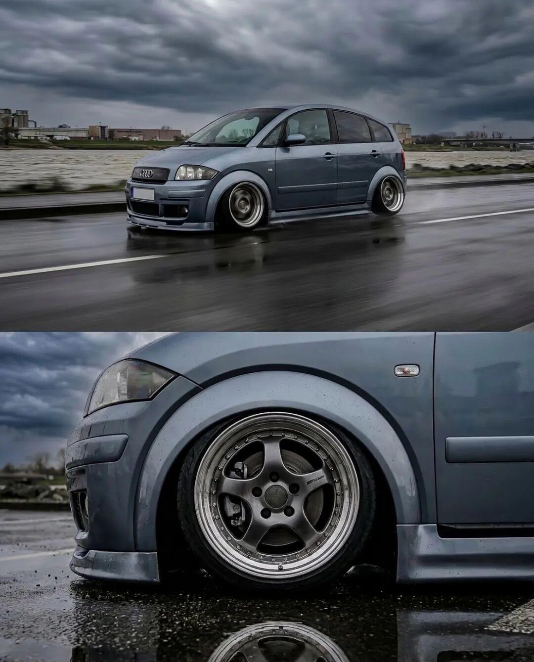 奥迪于1999年曾发布一款跨界休旅车A2,定位紧凑MPV,首度采用全铝车身技术,配以低至0.25的风阻及1.2 TDI发动机,百公里油耗仅3升。但最终仅生产约17.6万辆便于2005年停产。 所以奥迪A2的能见度相当低,这个改装低趴姿态的案例更是凤舞麟角!【来自懂车帝车友圈】