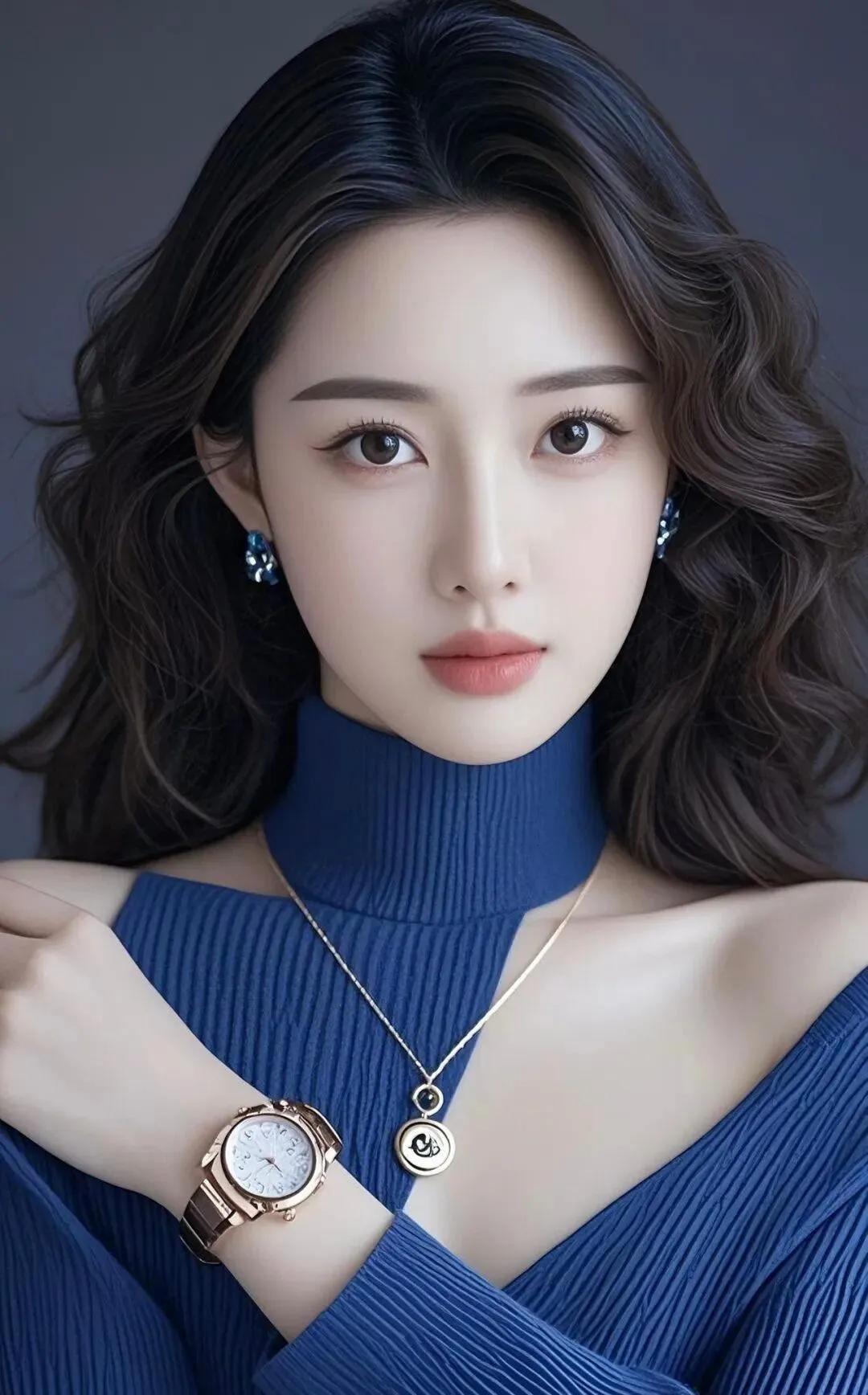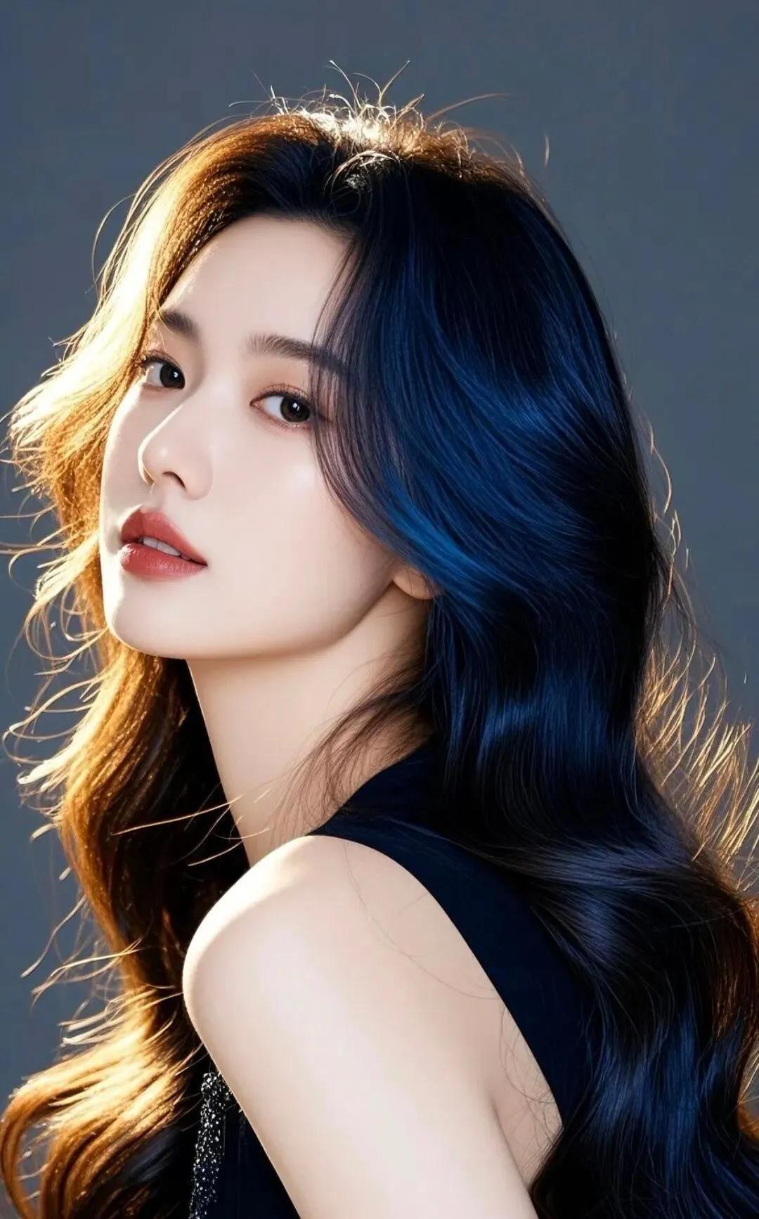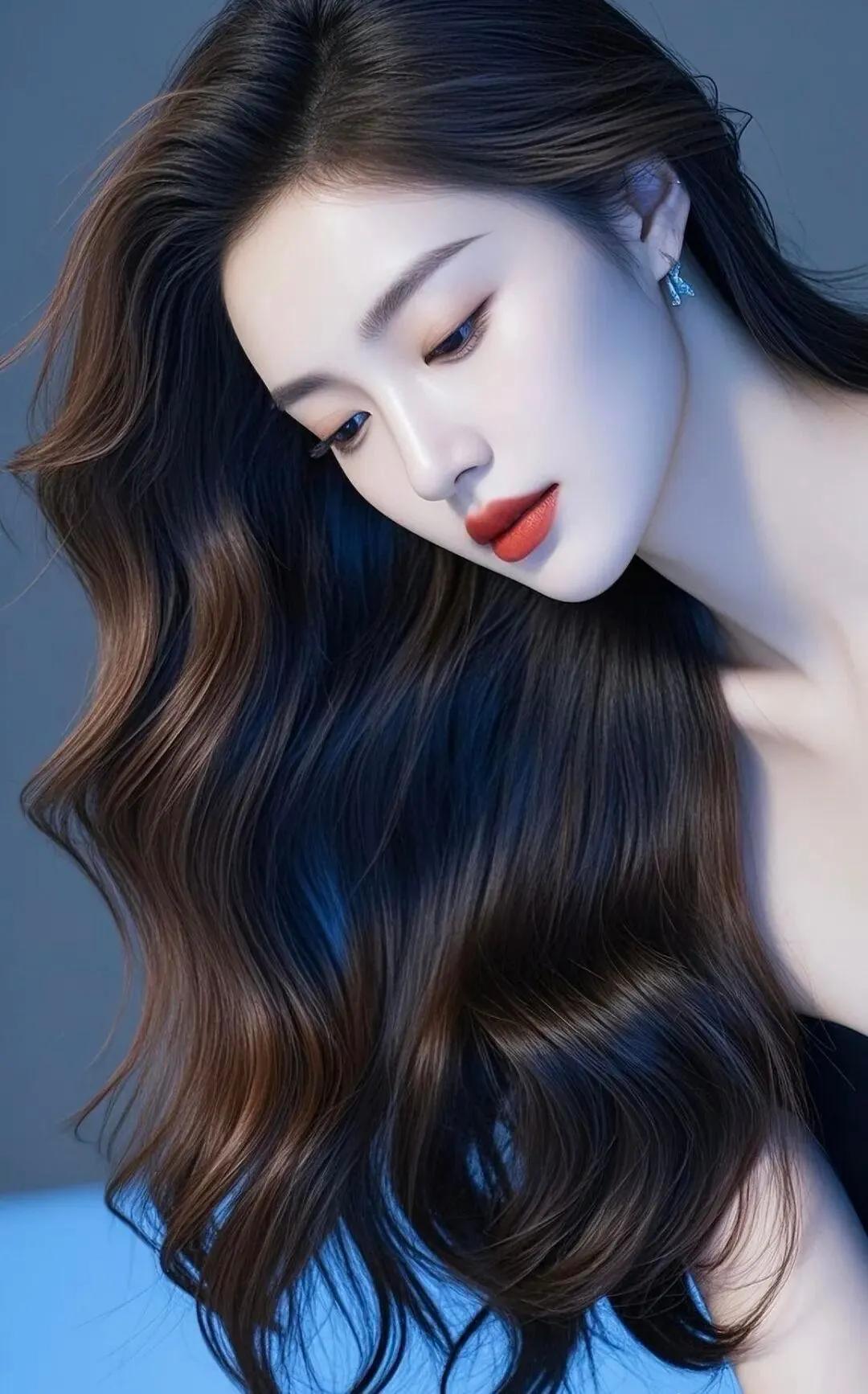 冷艳的蓝调背景,温柔的红唇,优雅的东方美人