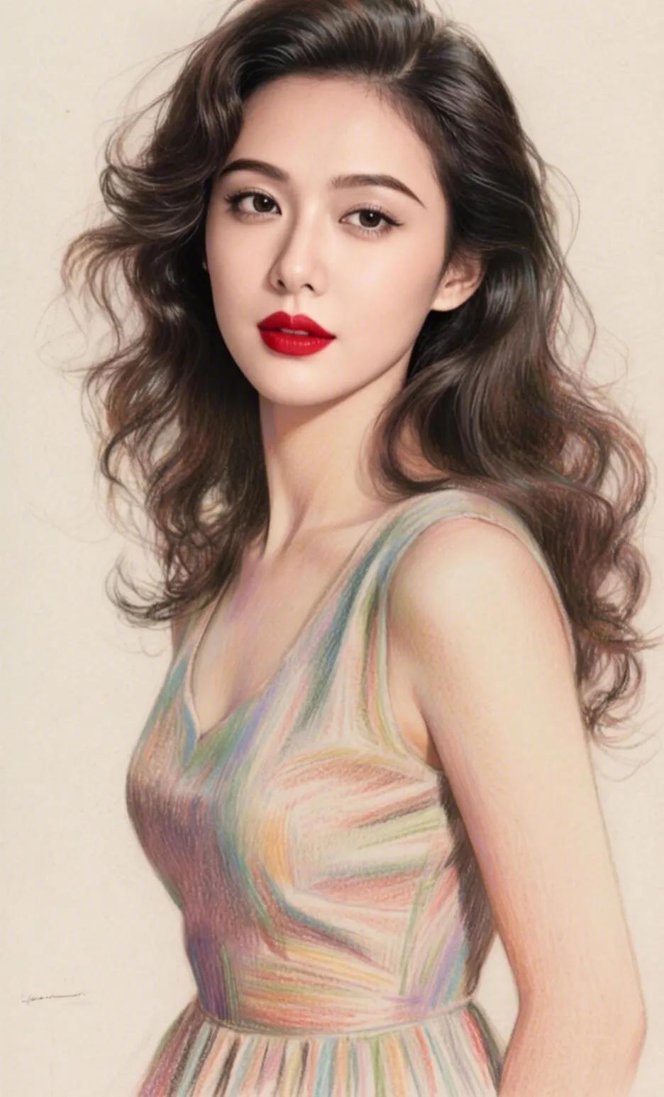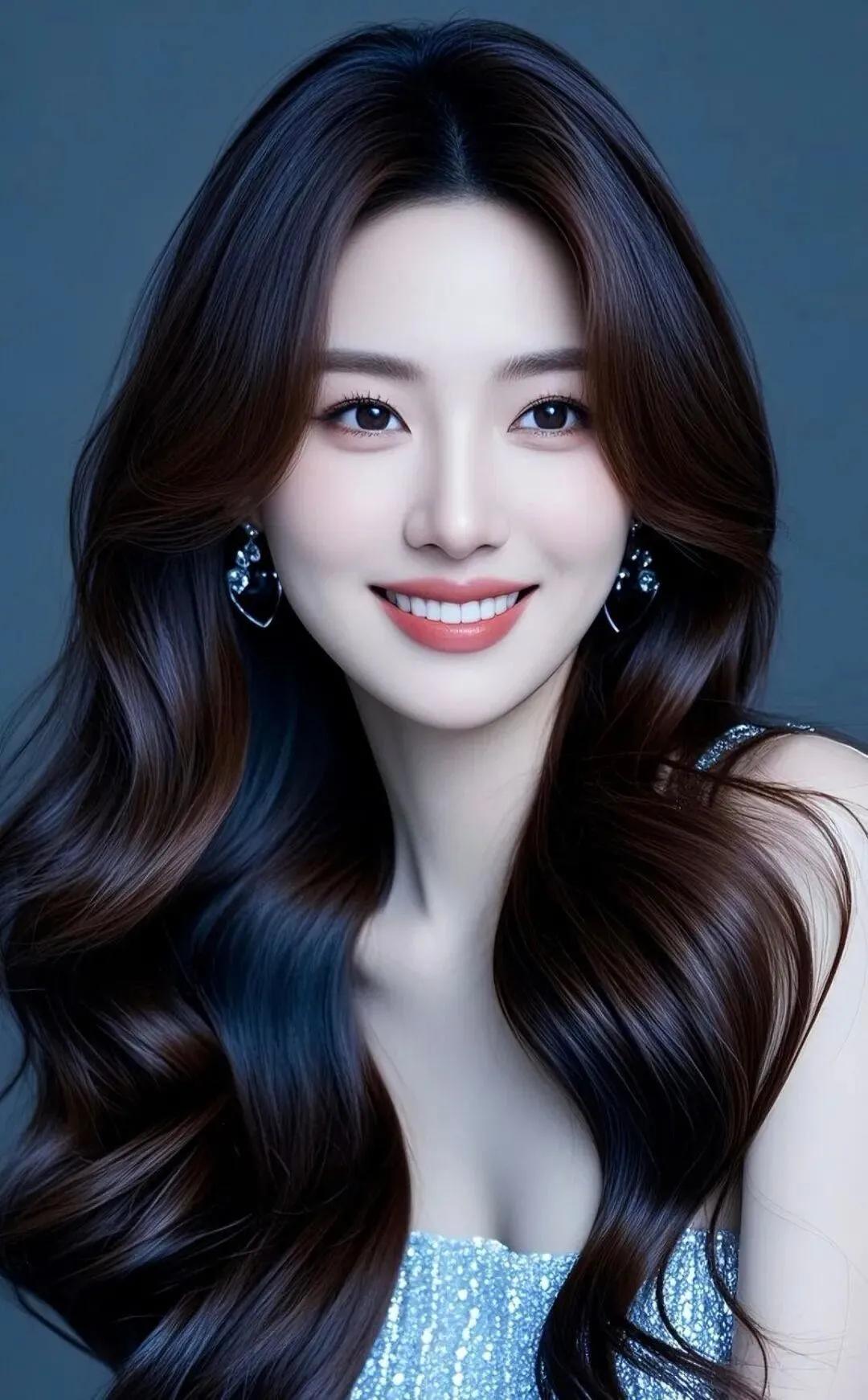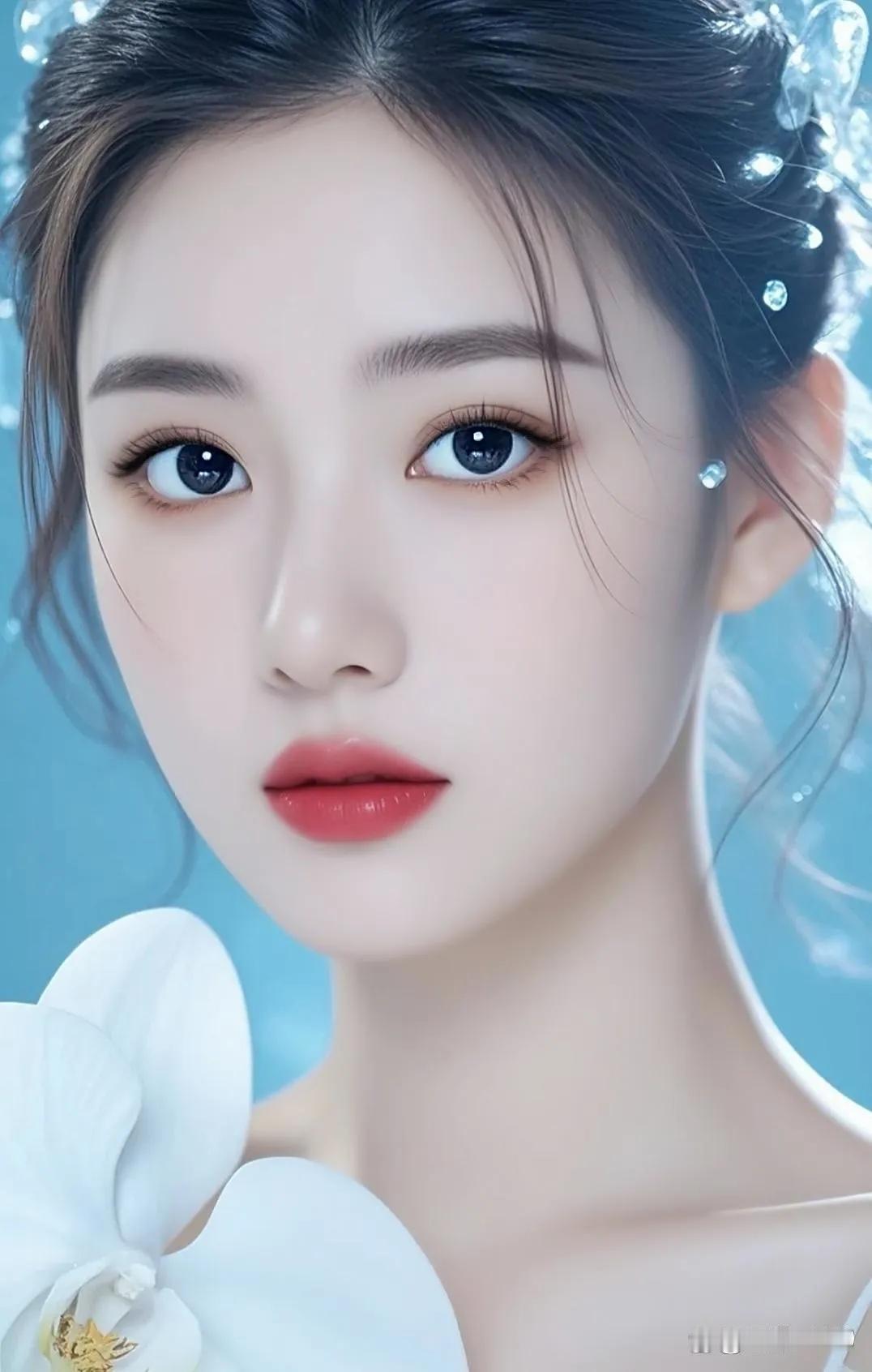 冷艳的蓝调背景,温柔的红唇,优雅的东方美人