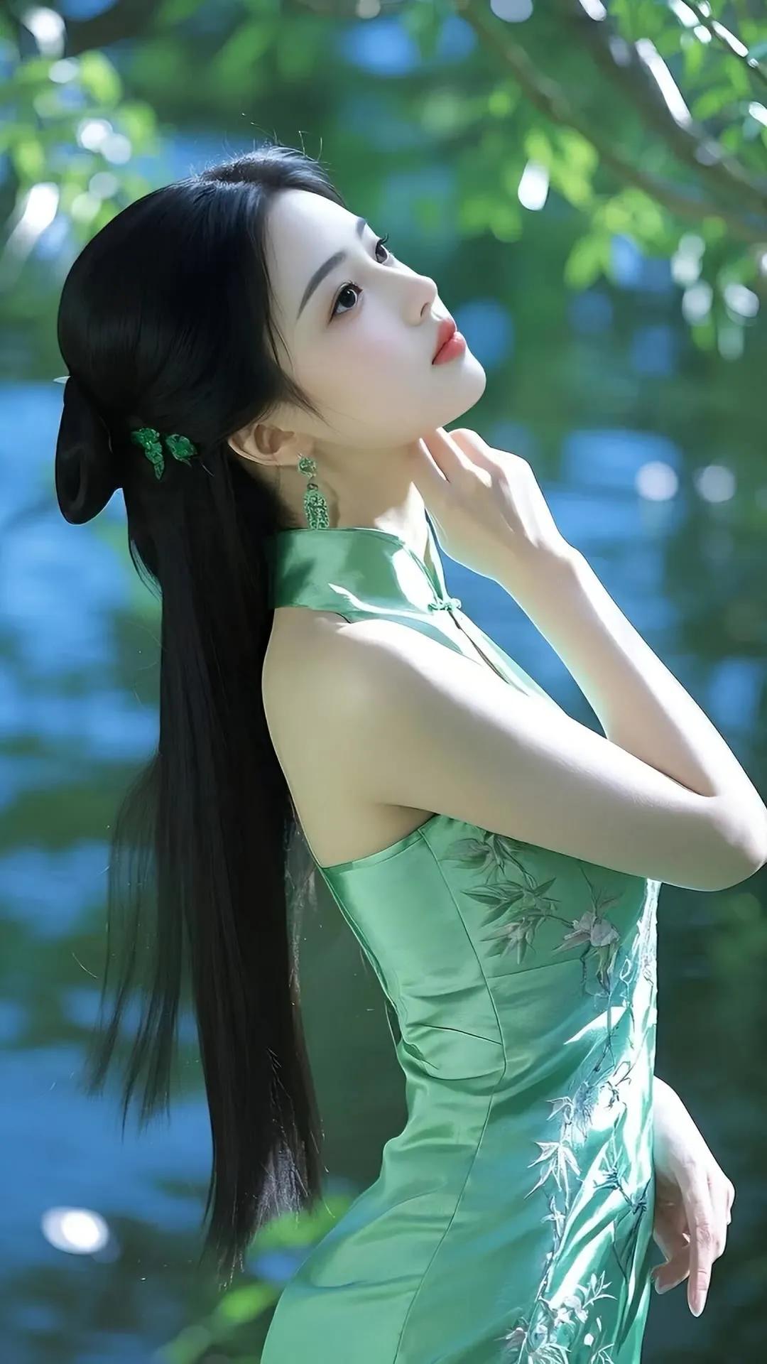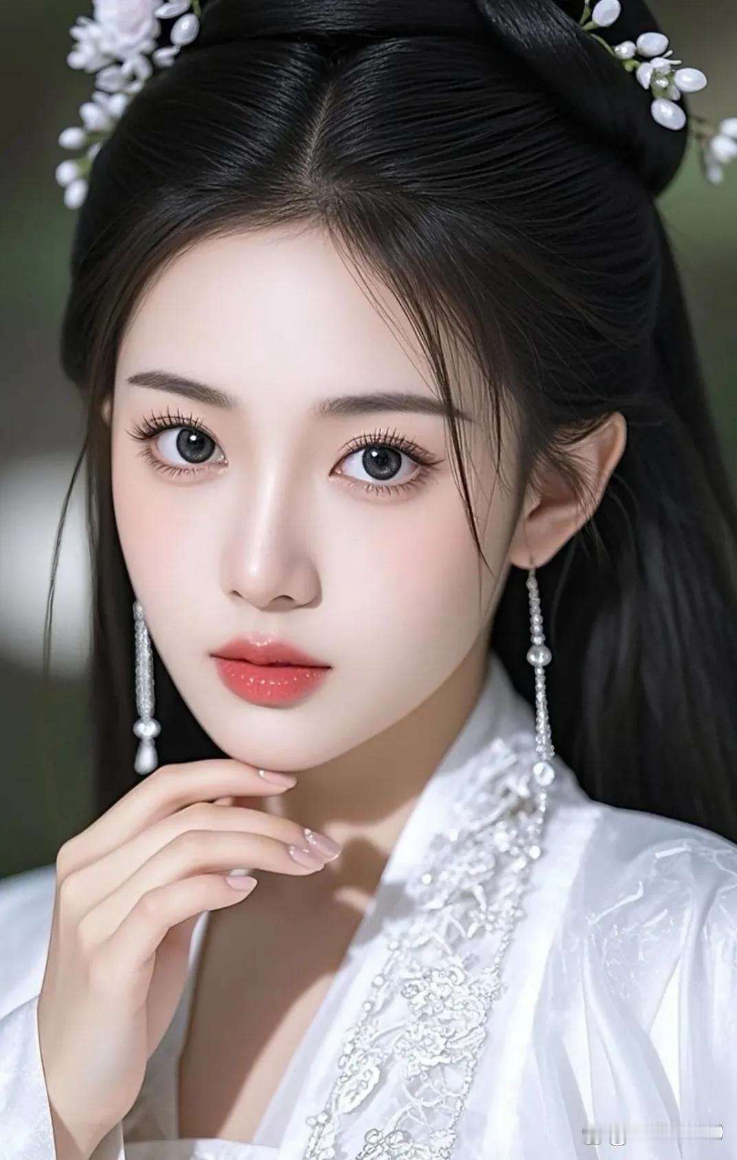 清新古风少女,一缕发丝轻扬,古韵悠然。