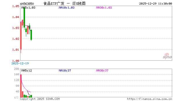食品ETF广发(563850)业绩比较基准为同期中证全指食品指数收益率,管理人为广发基金管理有限公司,基金经理为姚曦,成立(2025-12-10)以来回报为2.74%。