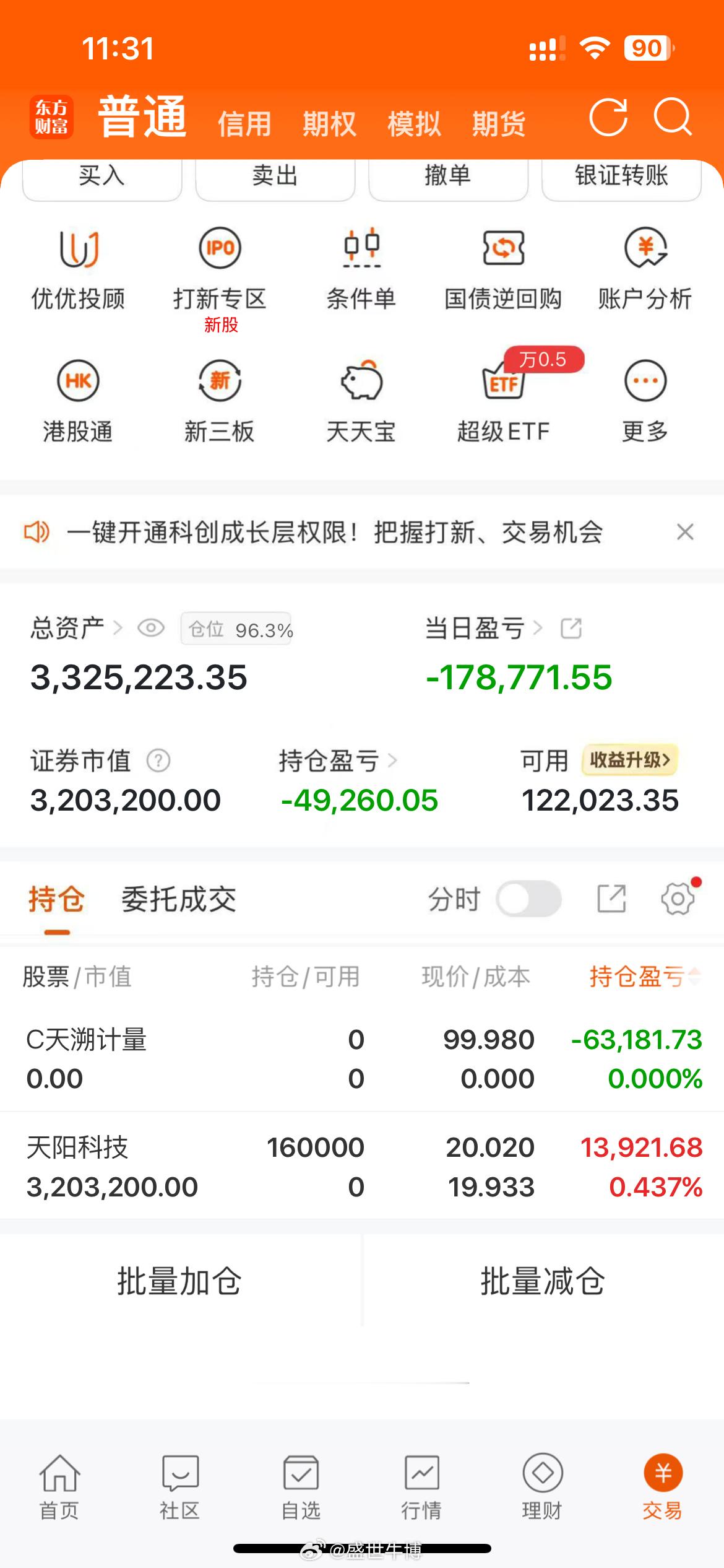 天溯计量低开低走选择止损,然后参与了天阳科技!