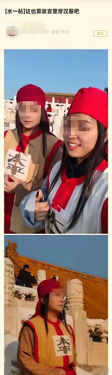 以其人之道,还治其人之身,太平军服装市民进入故宫。算是回应一对清装情侣大摇大摆出现在史可法纪念馆!尽管严格起来说,市民身上穿的肯定不是汉服,不过嘛,效果更加拉满,有些人注定不好受。哈哈哈。再者,故宫它是明成祖朱棣建立起来的,中华民族的文化遗产,太平天国的历史贡献又刻在英雄纪念碑上,凭什么不准的。满清故宫清