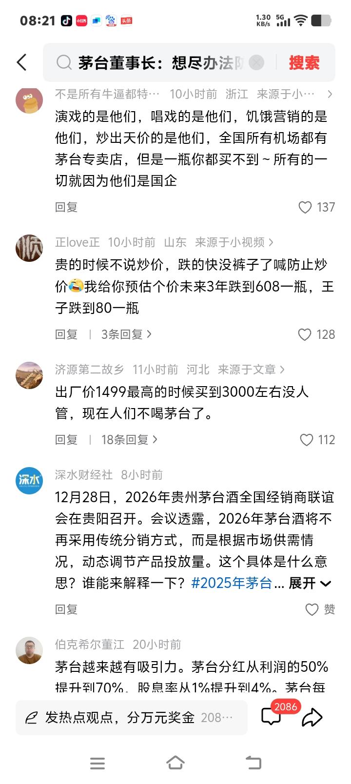 茅台董事长贵阳紧急喊话背后:一瓶酒从3500元跌到1560元,谁在“裸泳”?揭秘万亿帝国稳价风暴! 当一瓶飞天茅台的价格从年初的2200元跌至如今的1560元,当历史最高价3500元的泡沫逐渐破裂,茅台这座万亿帝国终于坐不住了。12月28日,贵阳经销商大会现场,新任董事长陈华面色凝重地喊出:“必须想尽一切办法,尽最大努力防止价格炒作!”这句话像一颗投入湖面的石子,瞬间激起千层浪。 价格暴跌的背后,是无数经销商夜不能寐的焦虑。有经销商私下算账,如今卖一瓶飞天茅台,算上配货的其他产品,综合成本高达1700元以上,按当前批发价出售,每瓶净亏超百元。而几年前,他们曾靠着囤货炒作,轻松赚取翻倍利润。市场从来残酷,潮水退去时,才知道谁在裸泳。 消费者们却在评论区炸开了锅。有人嘲讽:“没人炒了,才喊着防止炒作?”有人直言:“300元以下,贷款也买一瓶!”更有人翻出旧账:“全国机场都有专卖店,但你一瓶也买不到。”这些声音刺耳却真实,折射出大众对茅台“饥饿营销”的长期不满。当信仰开始动摇,神话还能延续吗? 茅台真的只是“一瓶酒”吗?从投资品回归消费品,这条路注定艰难。过去几年,茅台被赋予太多金融属性,成了某些圈层的硬通货和身份象征。宴席上开一瓶茅台,谈生意时送一箱茅台,甚至有人囤积居奇,等待升值。这种扭曲的消费生态,让茅台离普通百姓越来越远。 新任董事长陈华的改革刀锋,首先挥向了渠道。2026年,茅台将彻底放弃传统分销模式,根据市场供需动态调节投放量。这意味着,那些靠囤货牟利的经销商,好日子可能到头了。茅台试图打破“经销商吃肉、消费者喝汤”的旧格局,让价格真正“随行就市”。 但市场真的会买账吗?精品茅台五日内价格上涨114元,说明投机从未远离。只要有利润空间,就有人铤而走险。茅台要打的,是一场与人性贪婪的持久战。既要稳住高端形象,又要防止价格崩盘,这根钢丝走得惊心动魄。 从更深层看,茅台价格波动是中国消费市场转型的缩影。商务宴请收缩,年轻一代更理性,白酒文化面临挑战。当“喝茅台”不再是必选项,它的价值就需要重新定义。茅台能否放下身段,真正走进寻常百姓家?这考验着管理层的智慧。 消费者在等待一个答案:茅台究竟是谁的茅台?是资本炒作的玩物,还是值得品味的美酒?董事长陈华说,要让价格适配消费意愿。这句话的潜台词是,茅台必须倾听市场最真实的声音。那些在评论区呐喊的普通人,或许才是决定茅台未来的关键力量。 这场稳价风暴才刚刚开始。茅台能否刮骨疗毒,重建信任?价格会继续下探,还是触底反弹?每个人心中都有一杆秤。唯一确定的是,那个靠炒作就能躺赢的时代,已经一去不复返了。茅台的故事,正在翻开新的一页。 (来源:根据第一财经、新浪财经、酒业内参、深水财经社及网络公开热议综合整理) 茅台价格博弈 消费真相