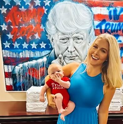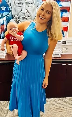 卡洛琳·莱维特不仅有漂亮的颜值和一副能怼善辩的嘴,带娃也非常优秀啊! 卡洛琳·莱维特这抱娃的动作一看就很娴熟啊! 一只胳膊这样抱娃,估计很多女性都不敢这个抱啊! 卡洛琳·莱维特这背景板是不是也很有特点啊?