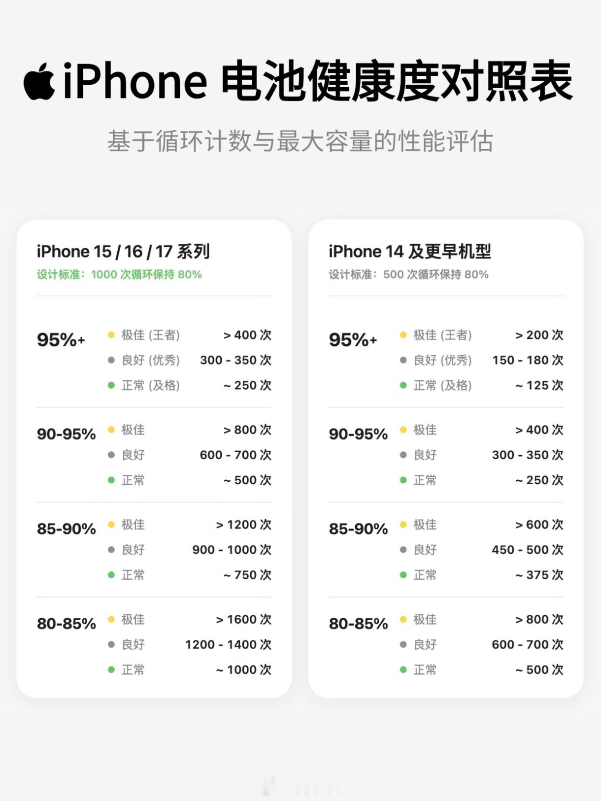 一般电池健康度掉到 80% 以下就可以更换电池了。突然掉到 0 可能是元器件损坏,或者显示异常。附上 iPhone 电池健康度对照表,你们自查一下吧。健康度用到0的电池