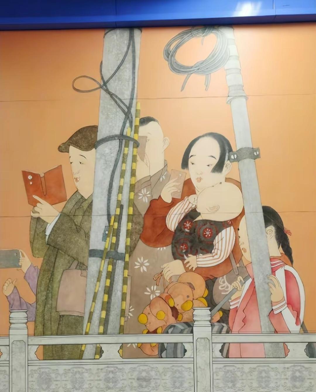 1. 北京地铁8号线天桥站的这幅墙画,生动的还原了乾隆皇帝冬至祭天,浩浩荡荡的场景! 2. 北京7号线某站的《集市童趣》图,吊梢眼,宽眼距,画风诡异,这不就是典型的倭风图吗? 大家还记得毒教材吧,是不是觉得很眼熟,一个风格!首都人流量密集的地址站出站这类图,实数不应该啊!大家怎么看?