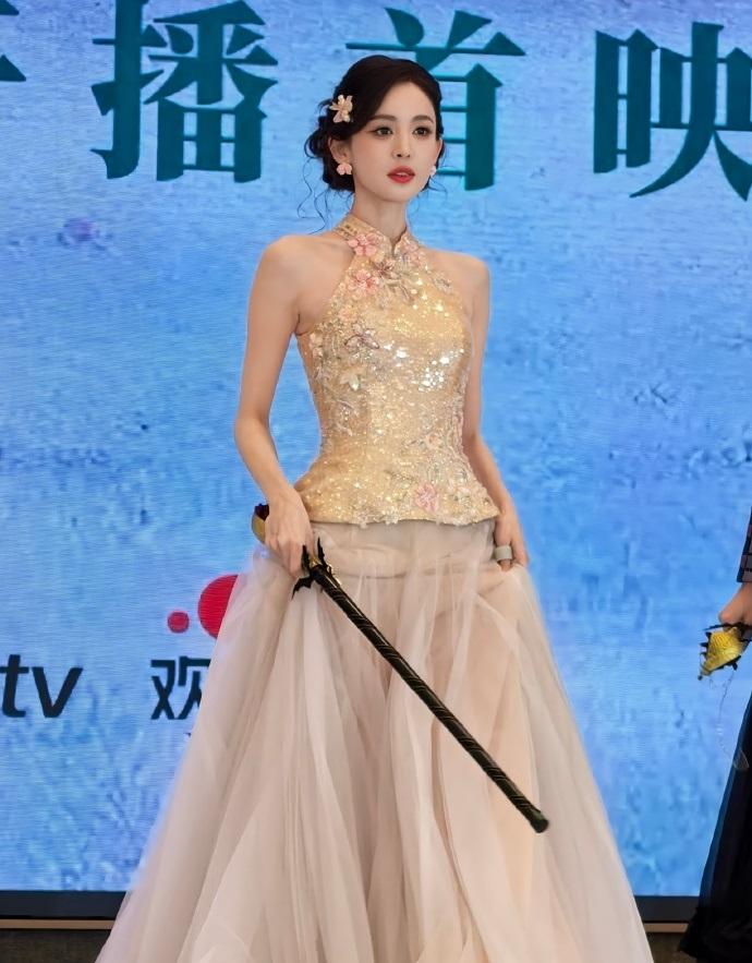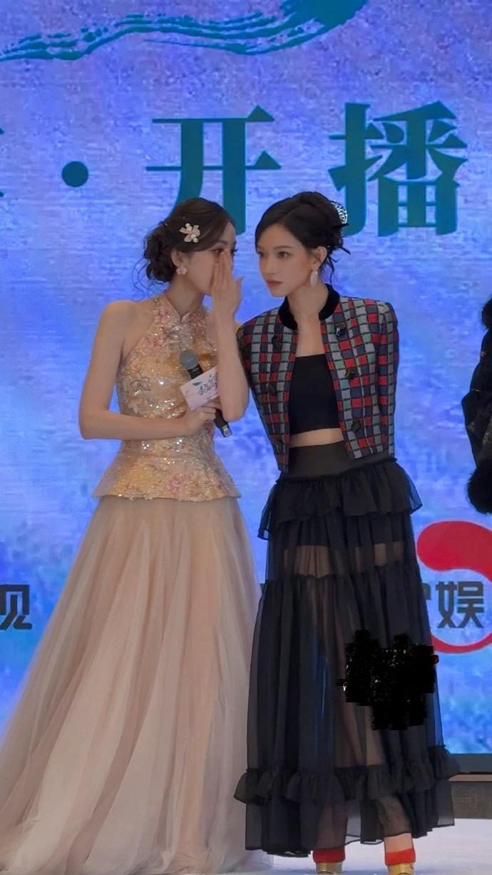 今天古力娜扎和程潇一起出席新剧开机仪式,两位站在一起真的是很有姐妹范儿,也都穿的好漂亮。 古力娜扎上身穿了一件古典风的坎肩,这件衣服有着完美的收腰效果,能够让她秀出苗条的细腰。 她下身穿了一件白色的纱裙,凸显出了满满的飘逸感,真的是格外靓丽。 古力娜扎这次特意把头发挽了起来,尽显优雅高贵之美,她头还戴着时尚的发卡,确实是超有吸引力。 程潇上身穿几何风短上衣,下身穿黑色的纱裙,能够让她展现出完美的身材比例。 她脚踩橘色的厚底高跟鞋,还戴着奢华的耳坠,看上去有种楚楚动人的感觉。
