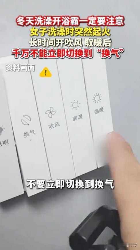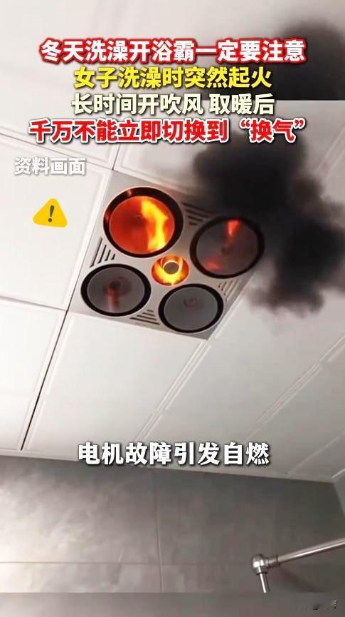 “悲剧还是发生了” 近日安徽一女子刚洗完澡 就把浴霸的“暖风”切换成了“换气” 结果还没出卫生间 浴霸就传来“砰”的一声闷响 随后火花如流星般飘落 吓得女子拔腿就跑 网友:洗澡的时候不是全都开着吗 很多人用浴霸都凭“直觉” 却不知道这小小的操作误区藏着大风险维修师傅戳破关键: 多数浴霸靠同一电机正反转实现暖风 换气功能长时间暖风后直接切换 电机线圈易过热短路 更要命的是超龄服役、杂牌劣质产品 或是安装时没接地线、没装漏电保护开关 都会让浴霸变成“定时炸弹” 浙江就有租户因浴霸“带病”工作半月 洗澡时突然起火吊顶烧得面目全非 电器安全从不是小事 说明书不是摆设定期检查也别偷懒 建议切换功能前先关电源冷却几分钟 老旧浴霸该换就换 你家浴霸用了几年平时都是怎么操作的