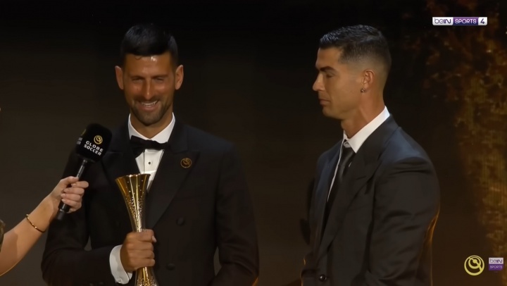 直播吧12月29日讯在2025环球足球奖颁奖典礼上,C罗现场为网球巨星德约科维奇颁发首届环球体育奖,在发表获奖感言时,德约也谈到了自己和C罗的关系。
