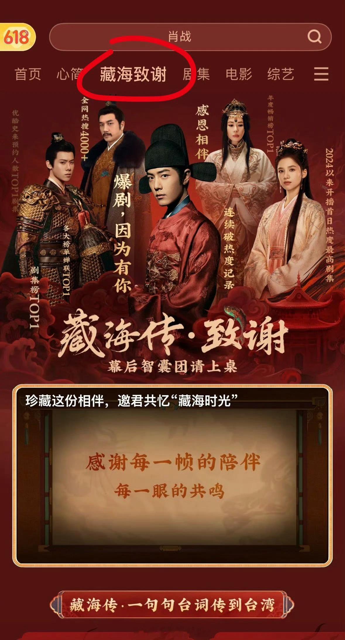 优酷超爱史无前例给剧王藏海传开致谢专栏