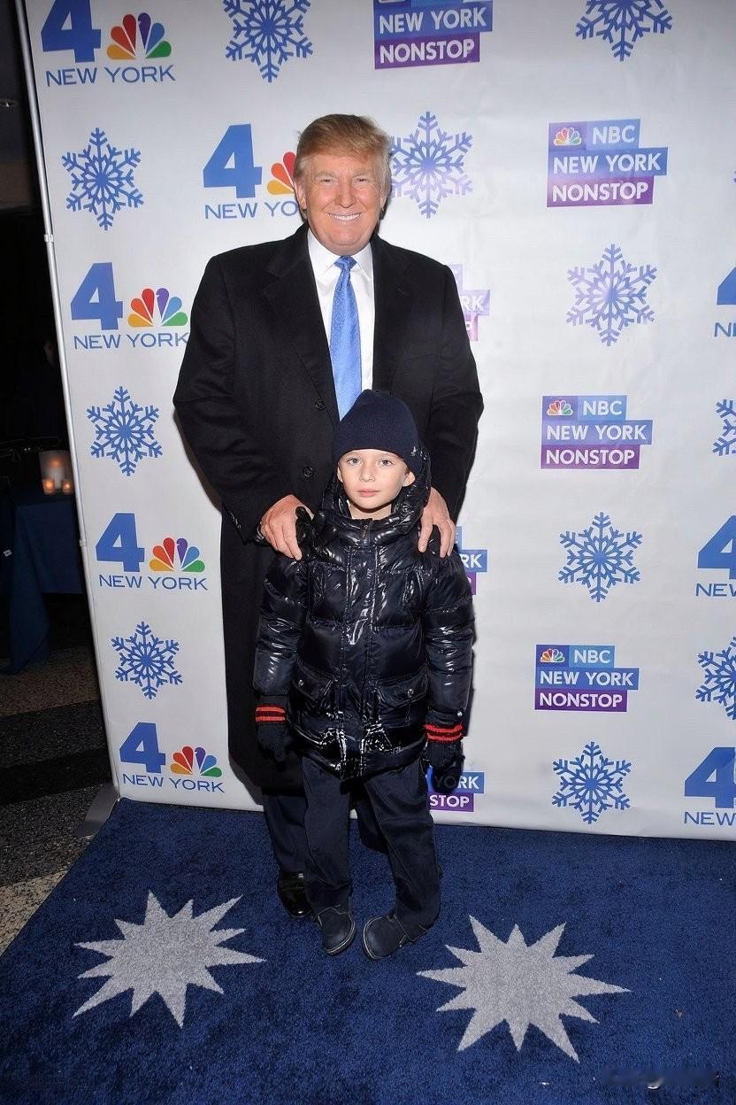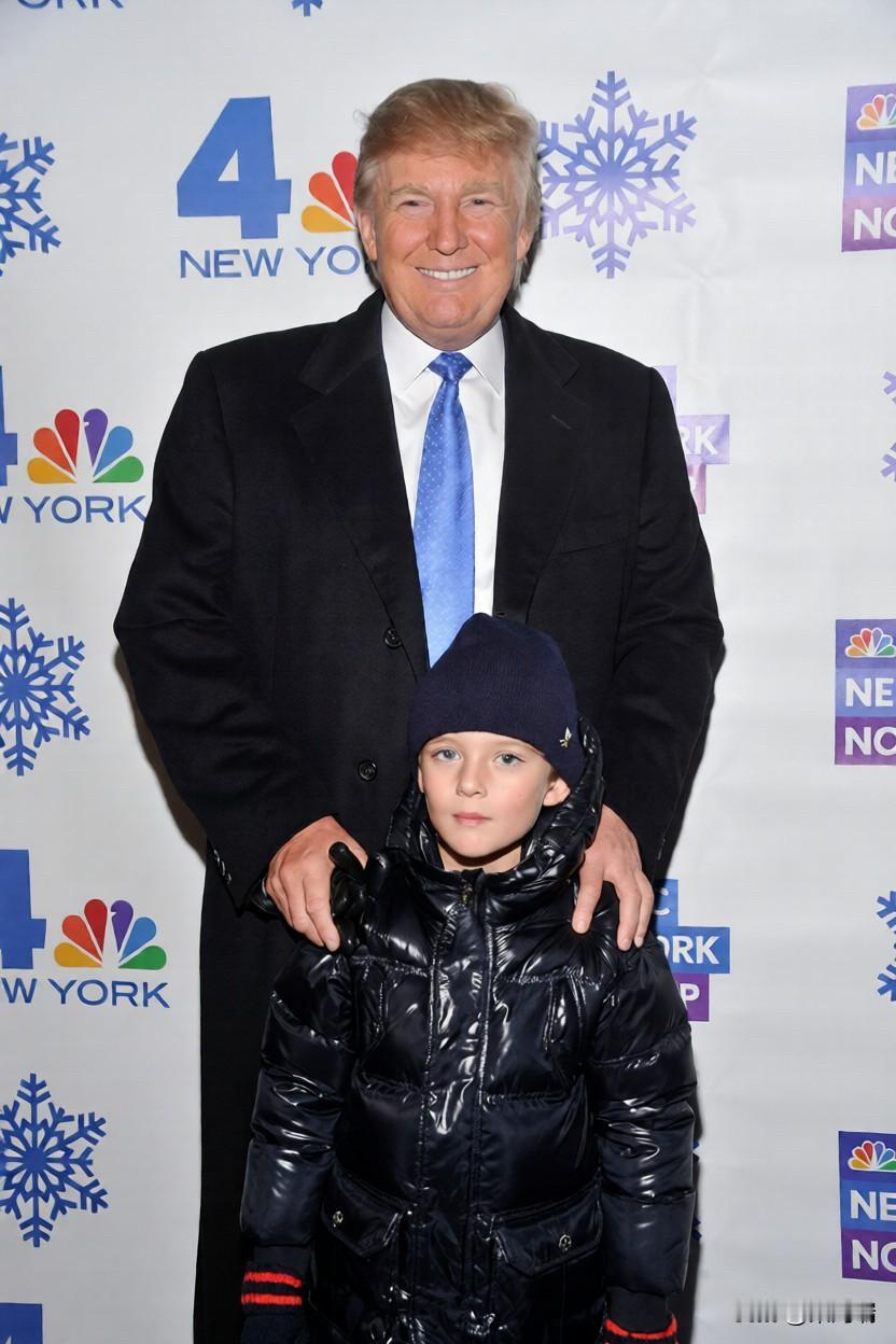 2010 年,特朗普和打扮得花枝招展的巴伦出席了洛克菲勒中心一年一度的圣诞树点灯仪式。