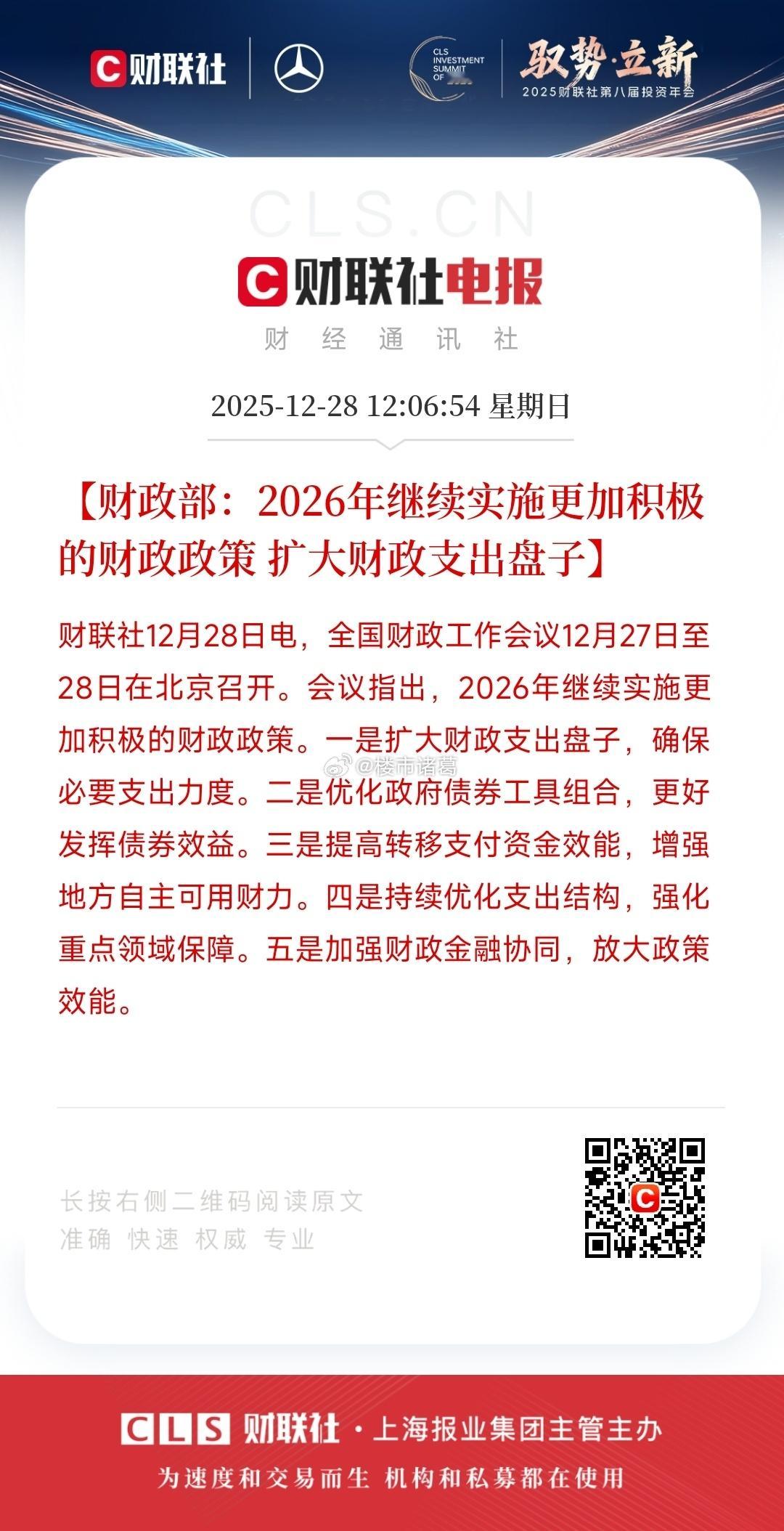 2026年是提振消费的关键开局之年。12月28日财政部召开会议,明确2026年要