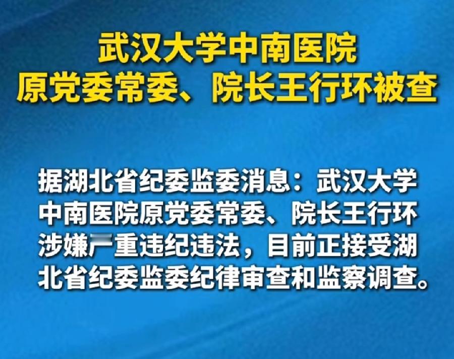 王行环被查!武汉雷神山医院原院长,前几天刚被撤销政协委员职务,就知道信号不对,现在实锤了!65年的,正好60岁,退休退不成了,工作一辈子全玩完!在武汉大学中南医院工作了17年,估计还是这个期间的事!疫情时还兼任了2个月,雷神山医院的院长,也算是抗疫特殊时期做过贡献的,可是功过两码事!可惜了!