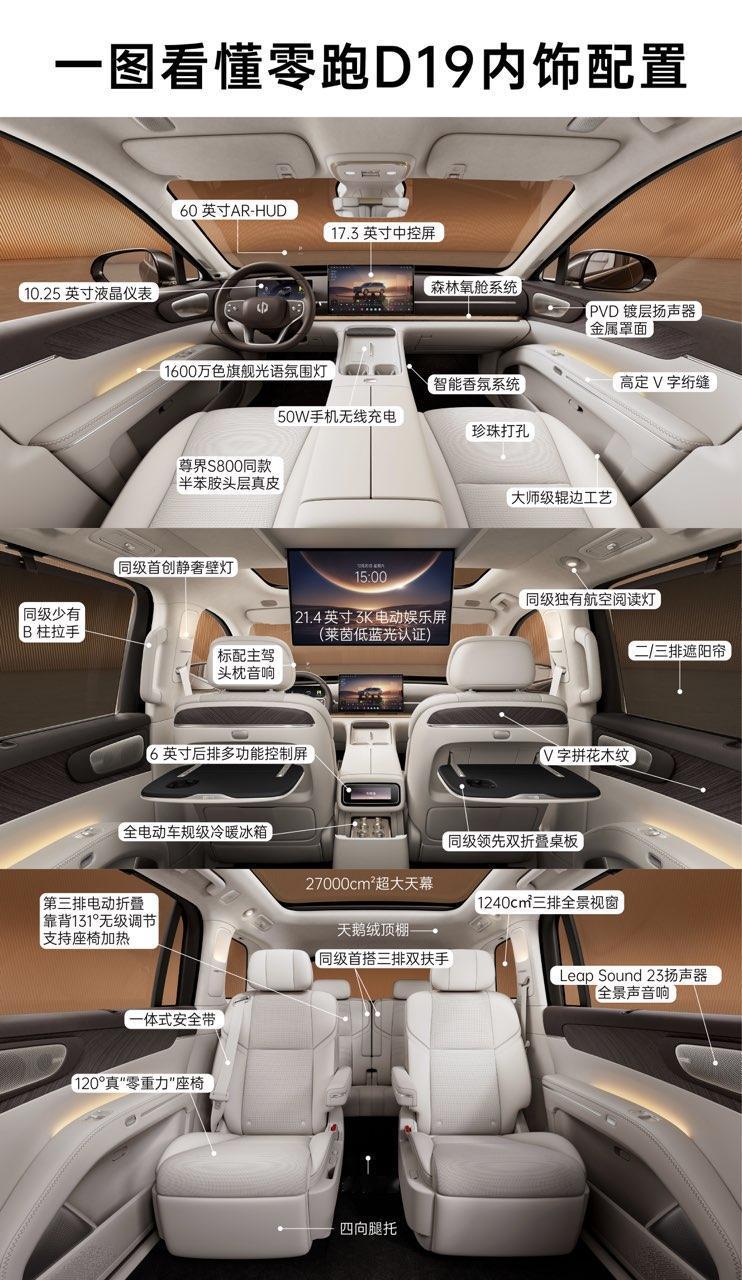 好久没见过一台车的内饰这么多说法了,刷到网上的图简直眼花缭乱。尤其是半苯胺头层真皮,我去搜了才知道原来是尊界和迈巴赫同款(原谅我以前只知道Nappa真皮),尊界的内饰我坐过,那层皮是真的很牛逼,触感完全不一样,要是零跑D19同款然后卖个三十万以内,估计迈巴赫也得来零跑这进货了吧....【来自懂车帝车友圈】