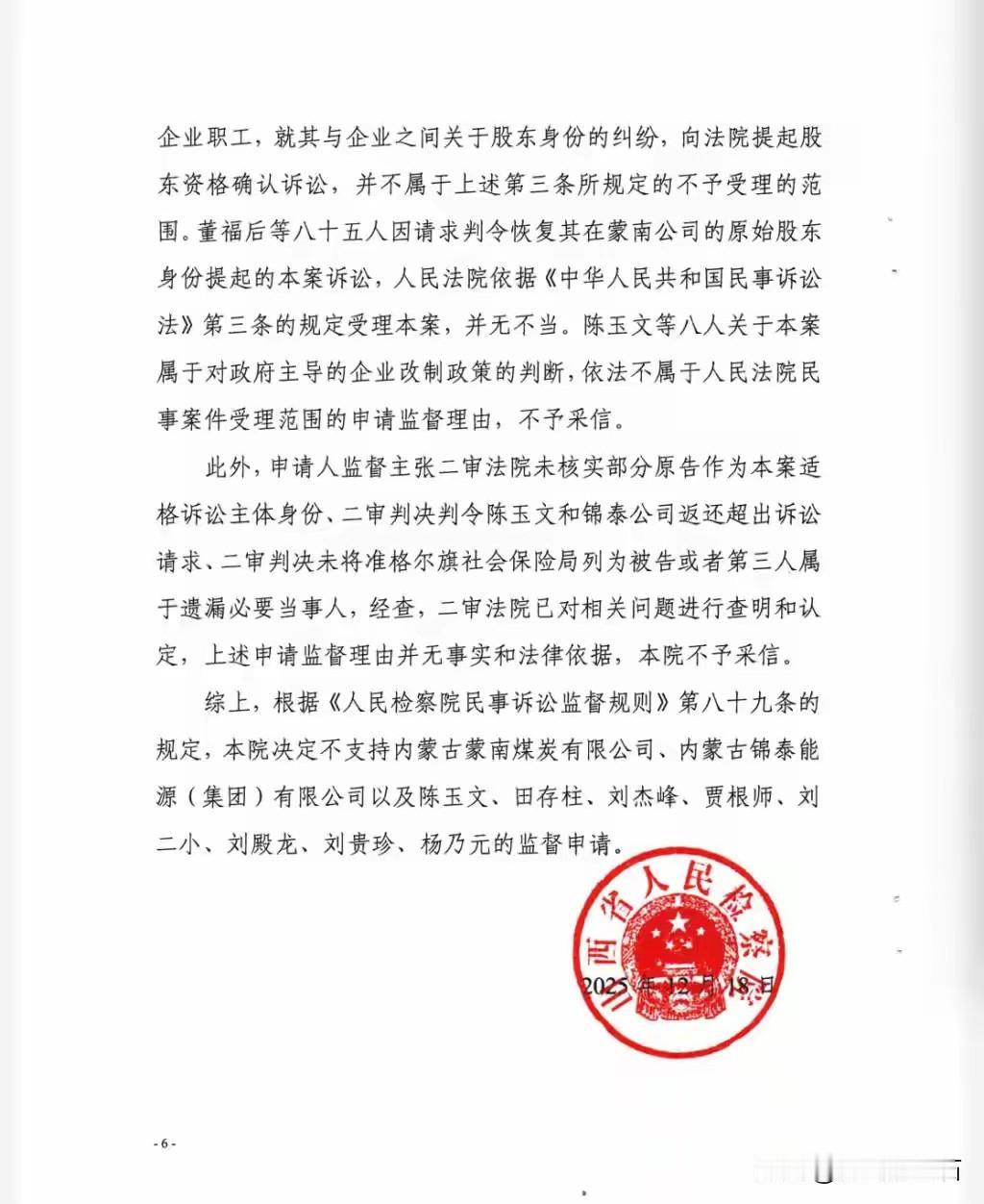 85名退休矿工追讨千万股权案有了新进展,检方驳回了矿企的监督申请。这案子可太曲折了,85位退休矿工辛苦大半生,为矿企奉献了青春和汗水,到头来却在股权问题上遭遇波折。他们想要讨回属于自己的权益,这是合情合理的诉求。 矿企申请监督,估计是不想轻易让出这千万股权。但检方驳回申请,也算是给了矿工们一个阶段性的胜利。希望后续能顺利解决,让这些为矿业发展付出一生的老人们能真正拿回属于自己的东西,安享晚年。