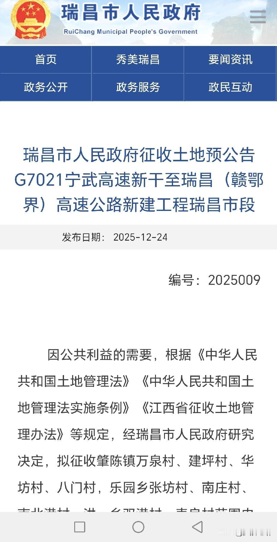 好消息!江西九江境内的新干至瑞昌高速公路,全长约82公里,一口气新增3个高速出入口,详细线路图现已发布,快来瞧瞧有你家乡吗? 近日,九江市两个县市发布了土地征收预公告,还规划设置了3个高速出入口、一个枢纽互通以及一个服务区,宛如为瑞昌市和武宁县打通了一条“黄金通道”,为当地经济发展和旅游业发展提供了至关重要的支撑。 一:瑞昌市拟征收:约1236.49亩,路线全长19.8公里,设置一个高速出入口。 瑞昌肇陈互通闪亮登场,它位于肇陈镇万泉村附近一带。 二:武宁县拟征收:约4800亩地,全长约50.3公里,规划设置了一个枢纽,3个高速出入口,一个服务区。 1.武宁东互通:位于新宁镇九头村附近一带,出入口在桐林村连接省道305线。 2.鲁溪互通:位于枫树村委夏河背后山上一带,出入口在邓山村附近连接国道316线。 3.武宁北枢纽:位于宋溪镇王埠村虎山一带,与永武高速公路实现互通互换。 4.武宁北服务区:位于宋溪镇大坪村西部湖边一带。 5.严阳互通:位于新宁镇石坪村