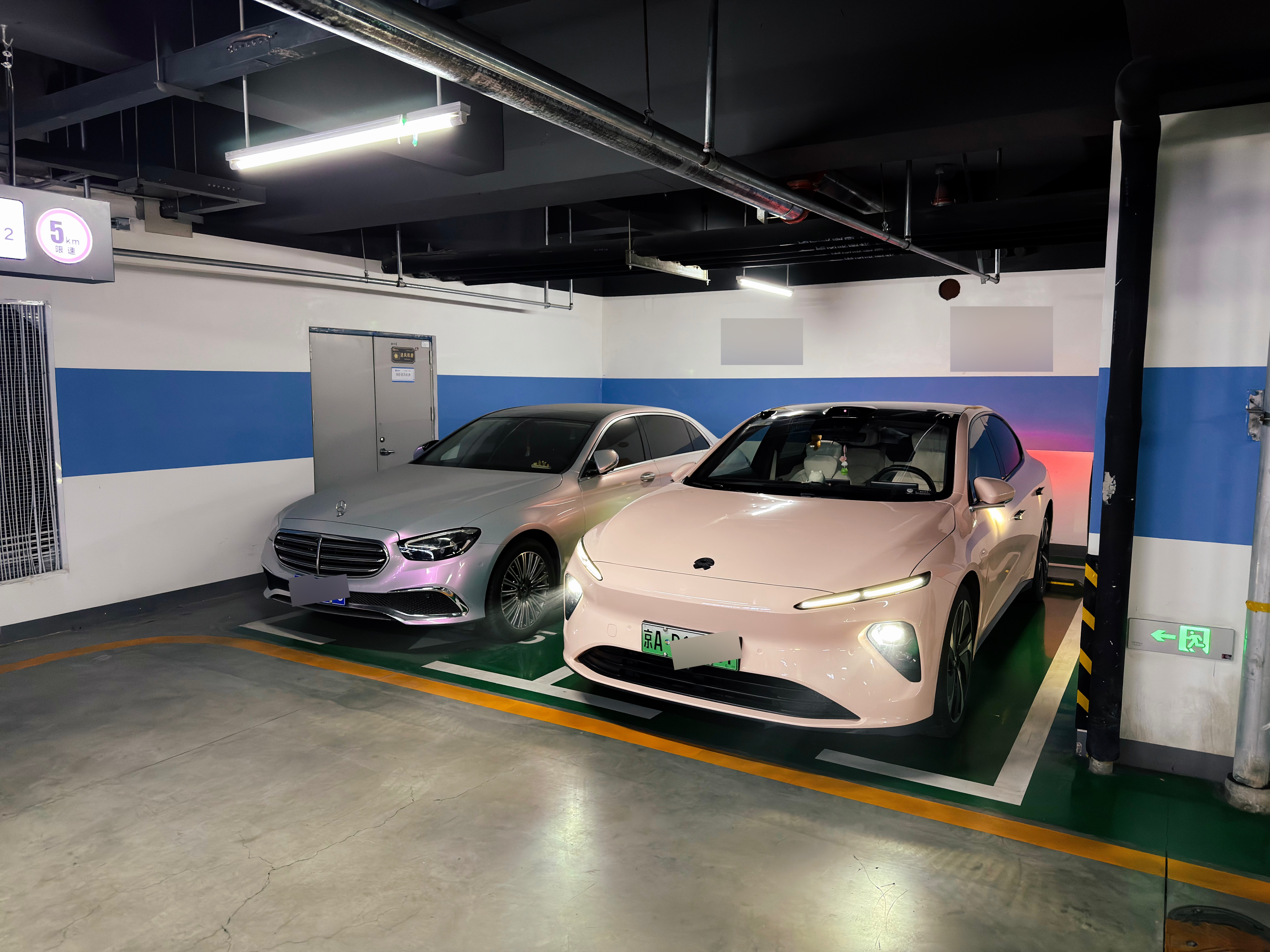 即使跟蔚来 ET7 来比,奔驰 E 的观感也要小非常多。主要是现在的电动车都太宽太高,车宽动不动就小两米,这一下子就显得大多了