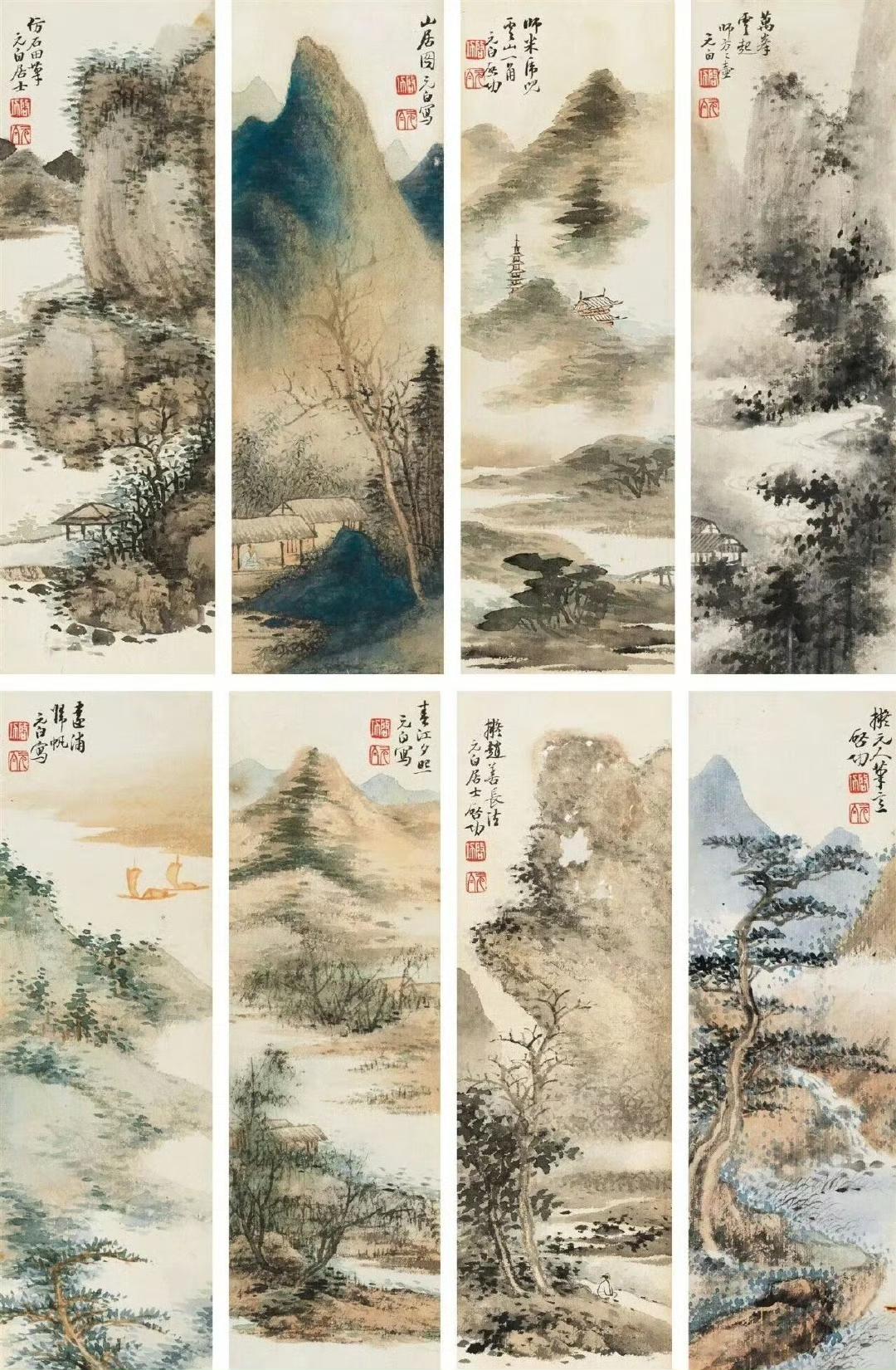 启功的《山水八砚屏》,那画面中山水相依,意境悠远。每一幅砚屏上的山水都仿佛有着自己的故事,线条简洁却韵味十足,展现出启功先生独特的艺术风格…… 启功 山水八砚屏