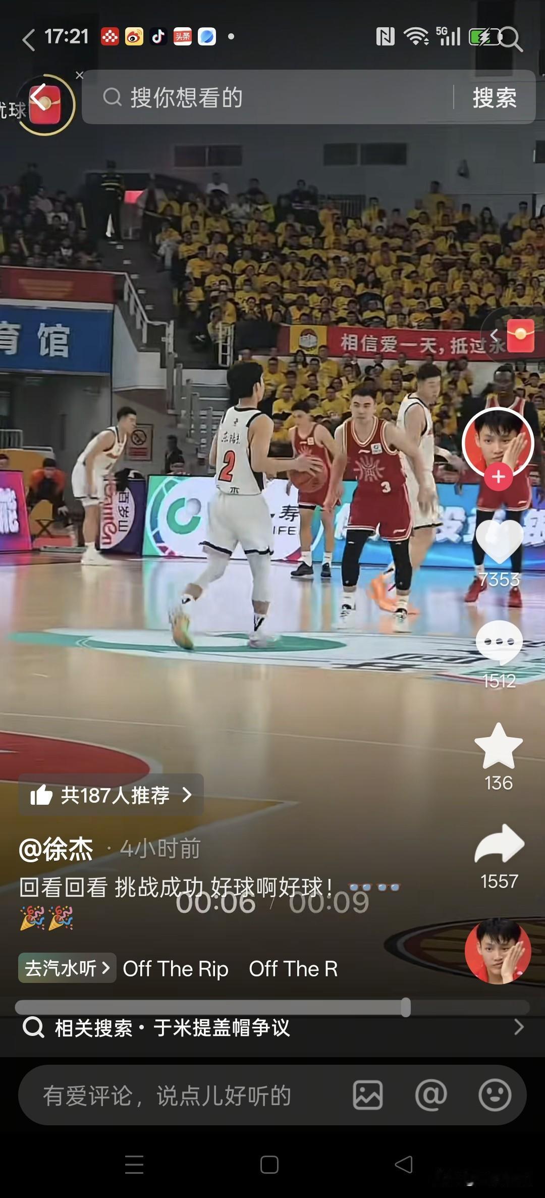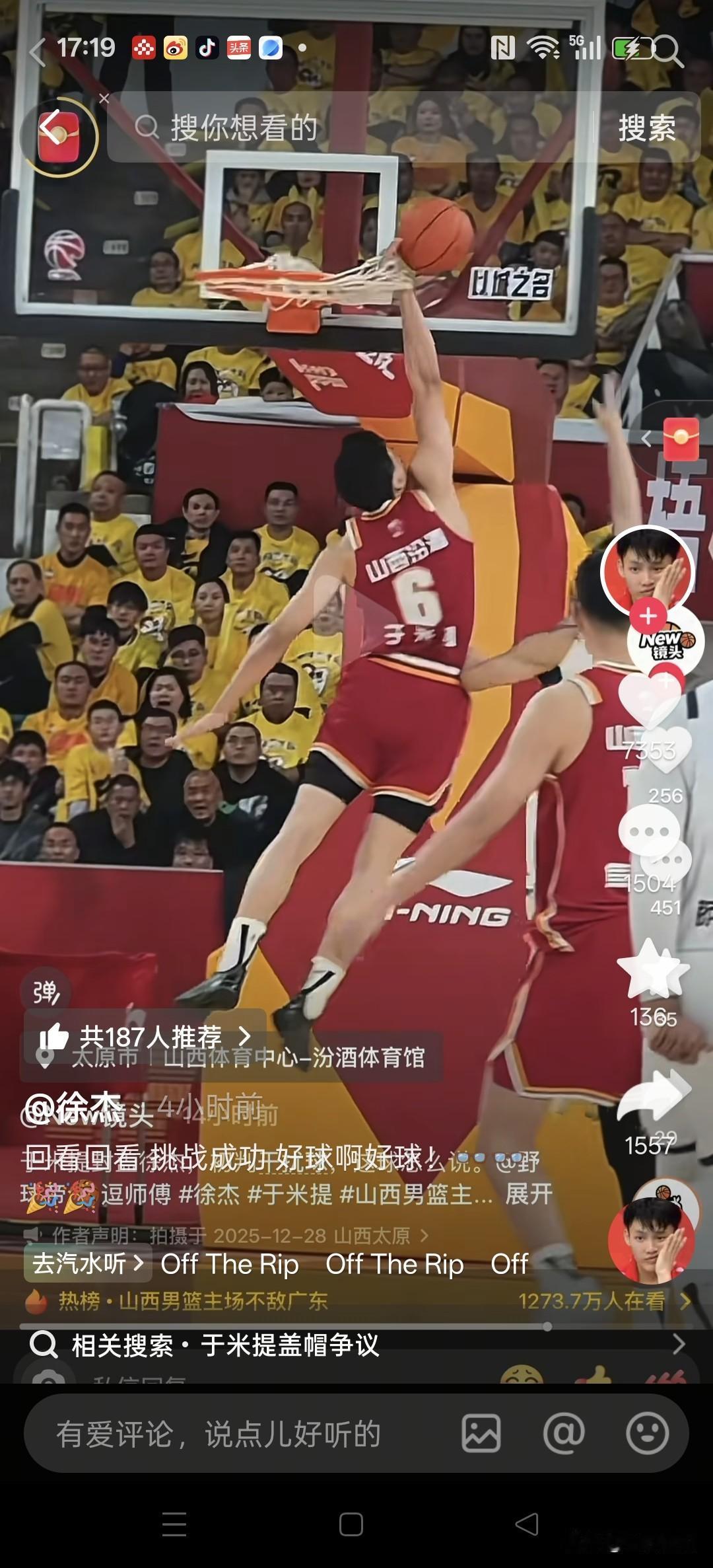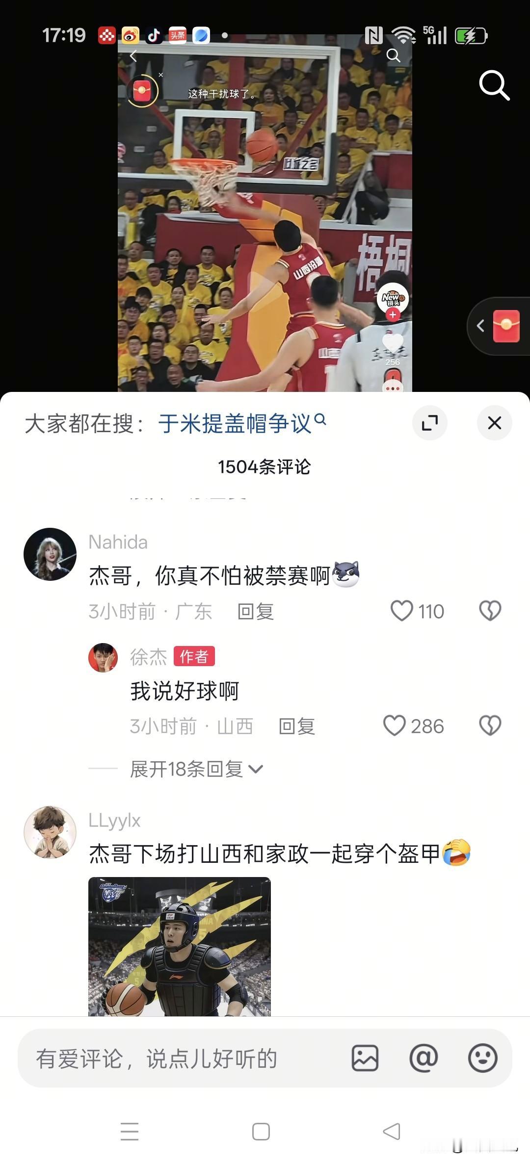 徐杰影射裁判不公,恐遭篮协追加处罚! 昨天晚上,山西汾酒男篮主场与广东东阳光男篮第七轮比赛以广东获胜而告终。这场比赛中,有一个环节引发了球迷关注,这就是于米提追身大帽徐杰,广东提出挑战。视频回放镜头清晰地看到,徐杰上篮的球并未触到篮板,于米提的手先拍到了球。回放镜头清晰显示,于米提的手并未与篮筐以及篮网有过任何接触。经裁判员长时间反反复复观看讨论,最后认定杜锋挑战失败! 今天,徐杰抖音账号发出一段视频,显示于米提在盖帽之前,他的手触到了篮网。球迷不解的是于米提的手套在篮网里还能盖帽徐杰投出去的球。仔细观看这段视频,发现前一段徐杰持球的视频没有叠影,后一段于米提盖帽的视频出现叠影情况。这就是说明,该视频有可能属于后期合成制作,真伪一时难辨。无论如何,徐杰以此视频为据,隐射裁判员判罚不公,属性妄议CBA、质疑CBA、要挟CBA的行为。有球迷询问徐杰:杰哥,你真不怕被禁赛啊?徐杰答:我说好球啊。CBA那些事 徐杰是否会受到篮协处罚?静待官方消息。 下图一,没有重影。图二有重影合成