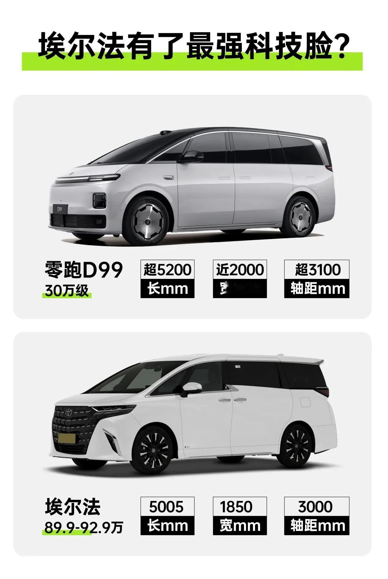 “钱江埃尔法”面世,价格30万级,可以闭眼等?   历经十年的摸爬滚打,零跑汽车从此前的边缘品牌一跃成为新势力顶流,年销量接近60万台,有望夺得本年度新势力销冠,而这十年以来,有不少陪伴零跑成长的用户成家立业,从单身变成大家庭,从工薪族变成高薪人士或是企业主,对车提出了更高的要求,既要家用舒适,也要商务接待体面。为此,零跑带来了D平台第二款车型D99,定位科技豪华旗舰MPV,号称“钱江埃尔法”。   从外观来看,零跑D99车身轮廓方正挺拔,确保了内部空间,前脸采用家族化三段式贯穿头灯、“超椭圆数字曲面”设计,实现类似湾流公务机的圆角设计,一派“科技脸”模样,造型确实有点科技埃尔法的意思。   侧面采用纯平侧窗,既能保证视觉的一致性,也能降低风阻,带来百万级静谧体验。另外,零跑D99车身更大,长5.2米+,宽近2米,轴距超3.1米,为接待或家用提供充足空间。   值得一提的是,类似问界M9的ISD智慧交互灯幕,零跑D99也没缺席,其内置8260颗LED光点,可以实现动态显示效果,提升了科技感。总之,零跑D99亮点不少,感兴趣的朋友可以去了解下,毕竟它跟D19一样,宣称以30万级价格带来百万级体验,品价比仍旧很“零跑”,值得期待。