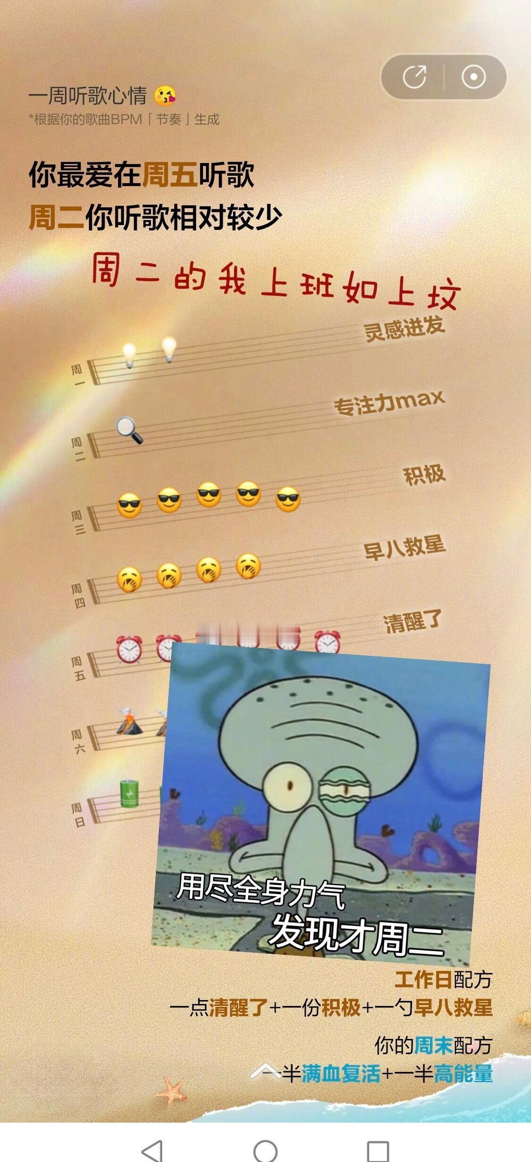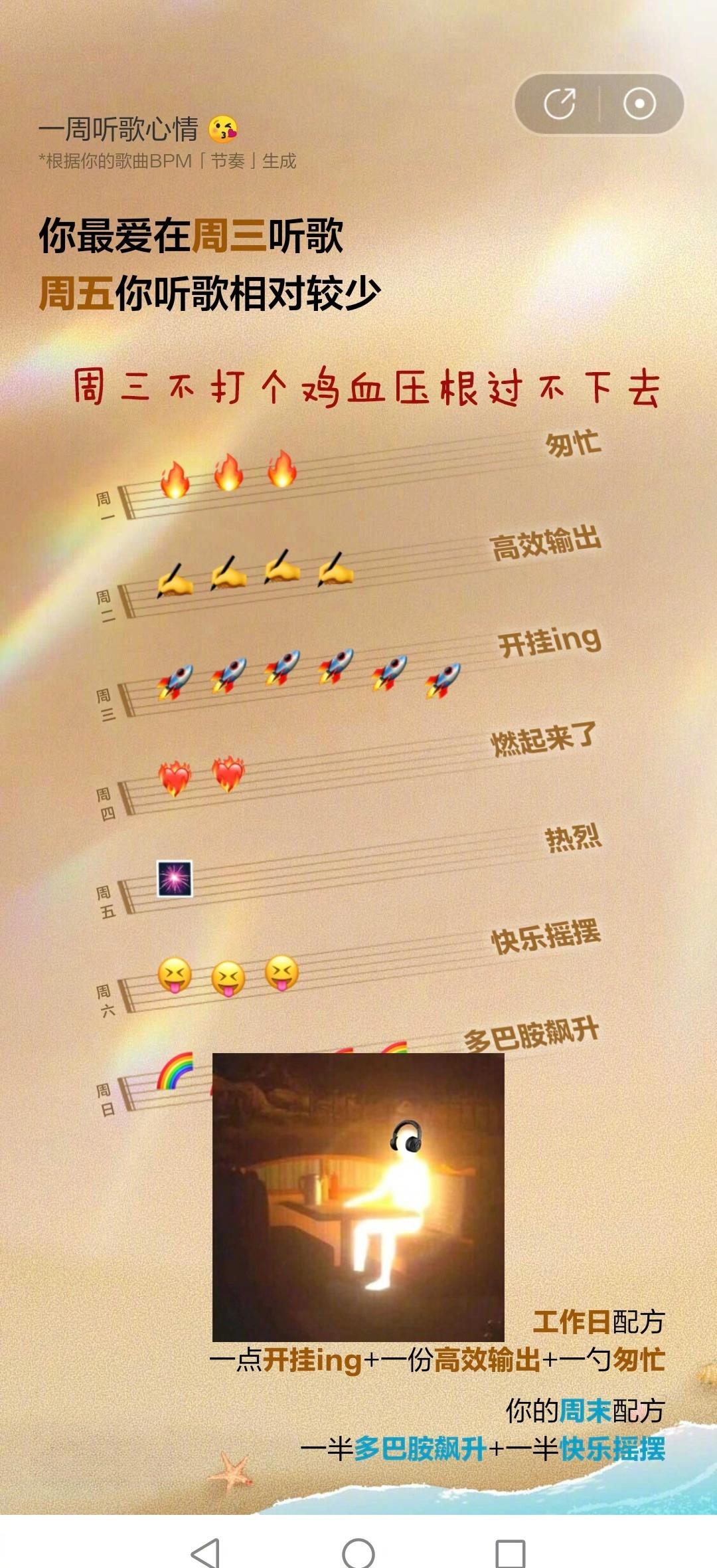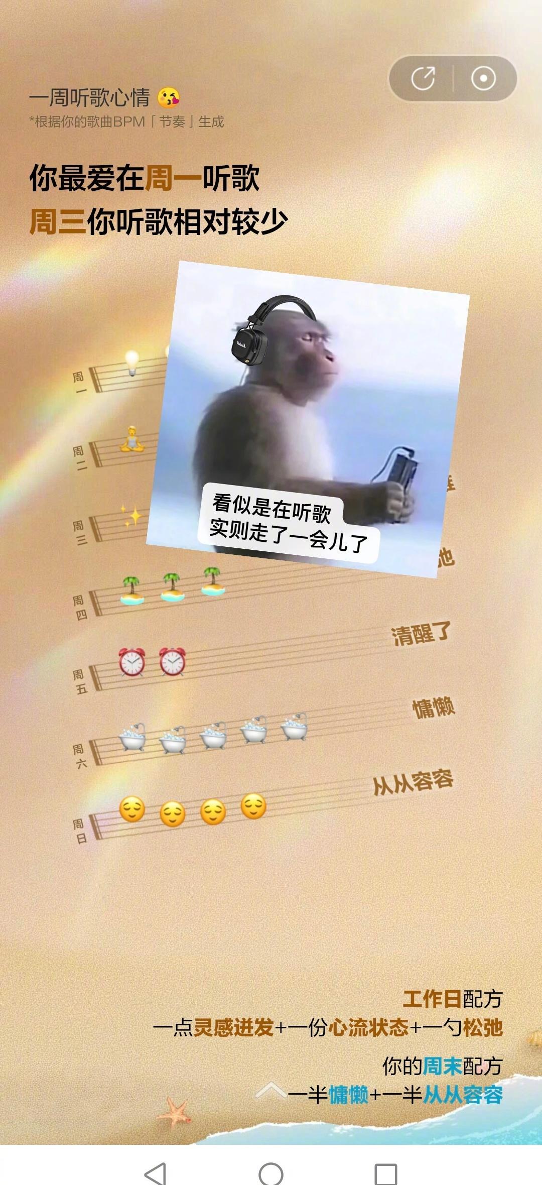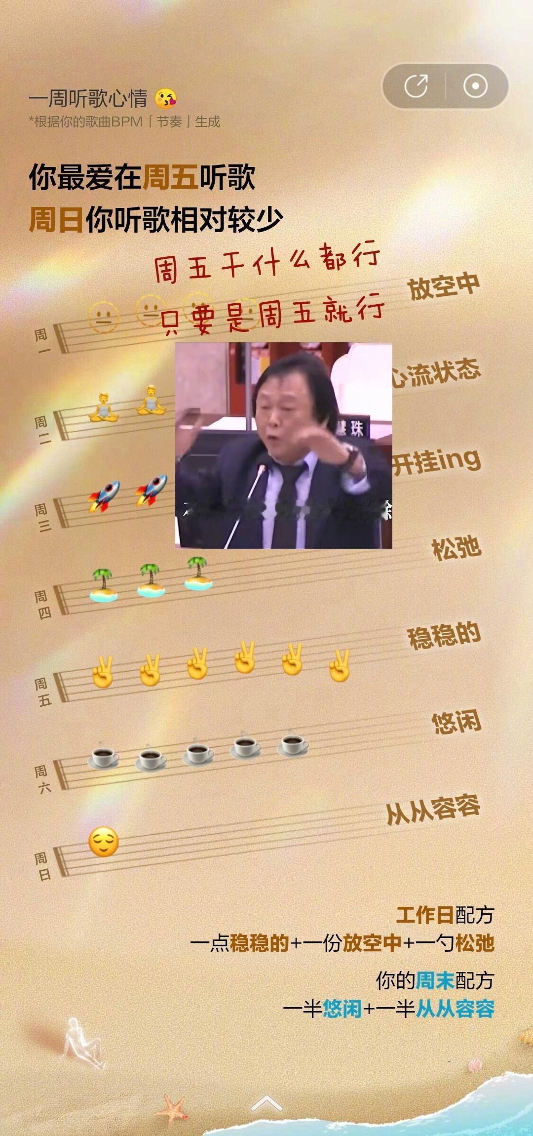 年度报告不但给爬墙追星人做了局,而且还完美戳中了打工人的痛。这一周听歌心情可以说是正确的、一针见血的,打工人工作日听歌心情有种活人微死感,周末才能真正享受true music~