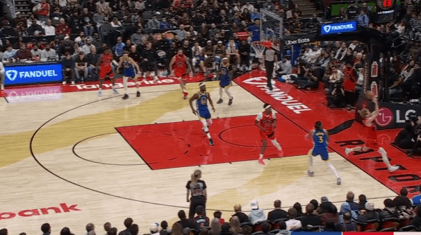 巴恩斯观察:25板23分10助大号三双,帮助球队鏖战加时战胜勇士图1巴雷特、巴恩斯、奎克力的三人上线小组配合:巴恩斯和巴雷特上线发动挡拆,与此同时尚帕尼执行“浅切”(Shallow Cut)。巴恩斯Slip快速拆走抢出身位优势,顺下接巴雷特击地双手扣篮得手。图2抢断穆迪的救球后精彩的脑后传球,找到篮下空位的莺歌。图3低位要到波杰错位接球启动背身单打,对抗的同时迅速衔接前转身向中路行进,随即起步合球抛投打进2+1。图4坚决放空追梦,并在其持球突破时回退篮下镇守禁区。在追梦击地传给库里的同时迅速转身封堵库里突破路线,在库里试图抛投躲避协防时,巴恩斯直接大帽扇飞。图5意识到追梦拿球发牌,勇士要开展无球传切配合后,坚决放空追梦回收协防。波斯特借助库里的“Flex Screen”挂住莺歌,获得篮下空位终结机会,追梦立即长传制导。但被巴恩斯判断到传球路线,高高跃起单手完成抄截。图6上前接发边线球后精彩的不看人击地球领人,找到沿底线空切的贾科比。图7凭借体型优势卡位冲向篮下,拼抢到前场篮板后补篮得手。图8接迪克救球长传持球推动反击,看框吸引霍福德防守注意力后击地球领人找到右路跟进的马穆。图9低位接球前转身杀入篮下,起跳空中对抗终结打进,强吃穆迪。图10、11比赛第四节最后时刻的关键抢断和掠夺前场篮板补篮。NBA NBA中腰部博主伙伴计划