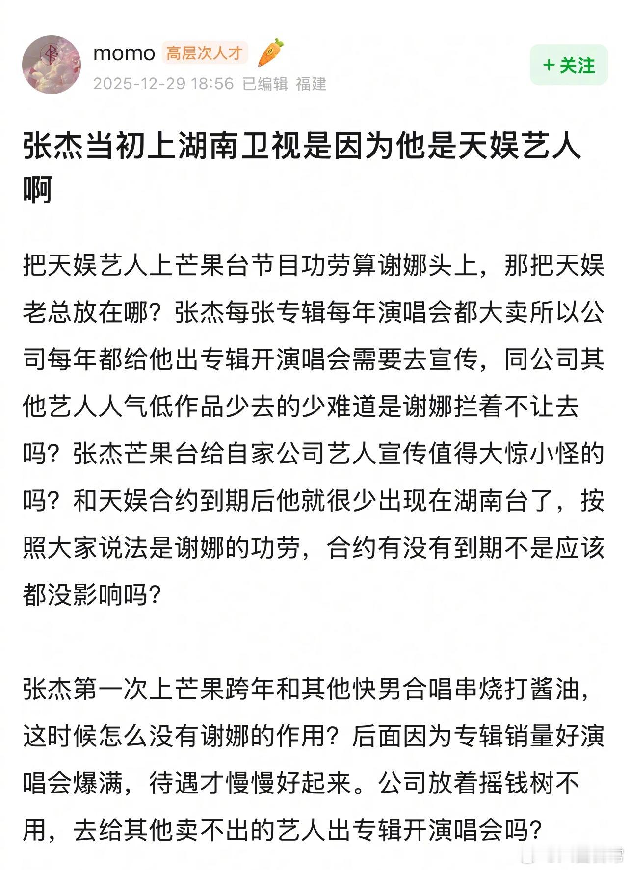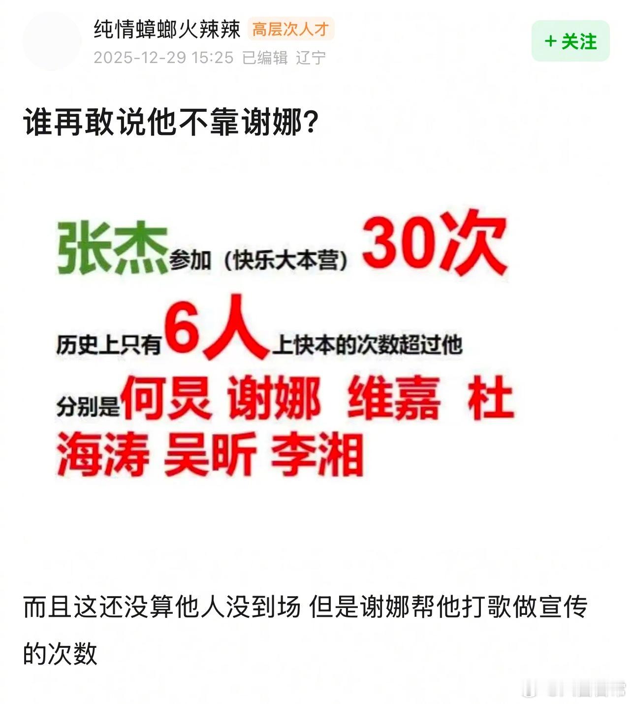 豆瓣说张杰当初上快本是因为他是天娱艺人,怎么能把天娱艺人上芒果台节目功劳算谢娜头上张杰梦女张杰谢娜 双人舞