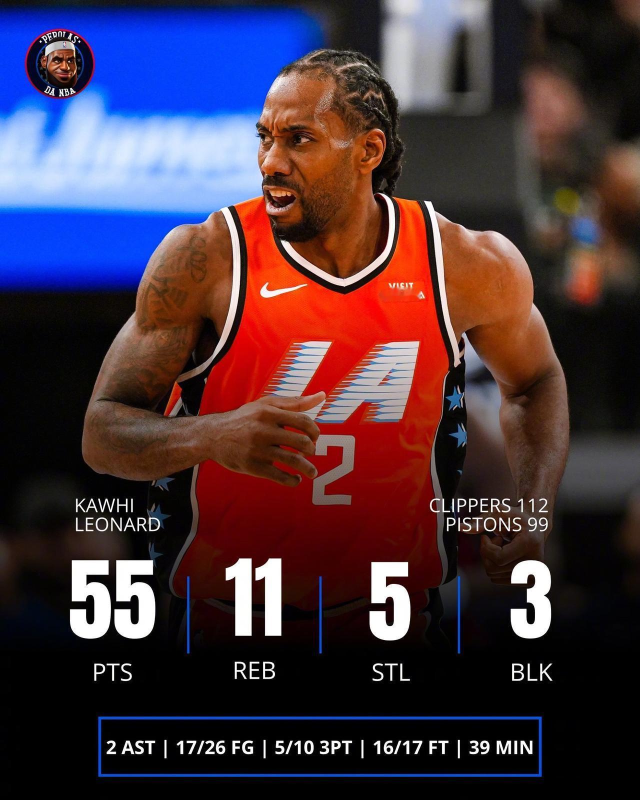 小卡在34岁的年龄下,面对面对东部第一活塞队,居然砍下55分,单节26分太过恐怖。你要说10年前小卡这个水平我认为正常,但真的经历了这么多伤病、年龄已经接近别人退役的年纪,小卡还能打的这么猛,确实让人觉得不可思议。 此外伦纳德还有一个让人不可思议的数据:赛季至今罚球是126罚123中,命中率高达97.6%,虽然看似简单,但鲜有人能做到,这个就是基本功了。