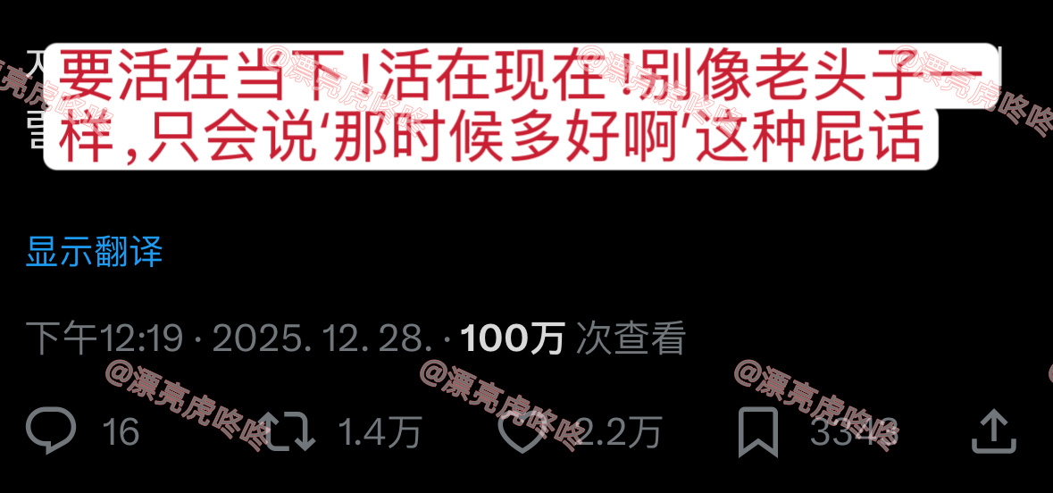 【twi】1.3万转🔥“要活在当下!活在现在!别像老头子一样,只会说‘那时候多好啊’这种屁话”