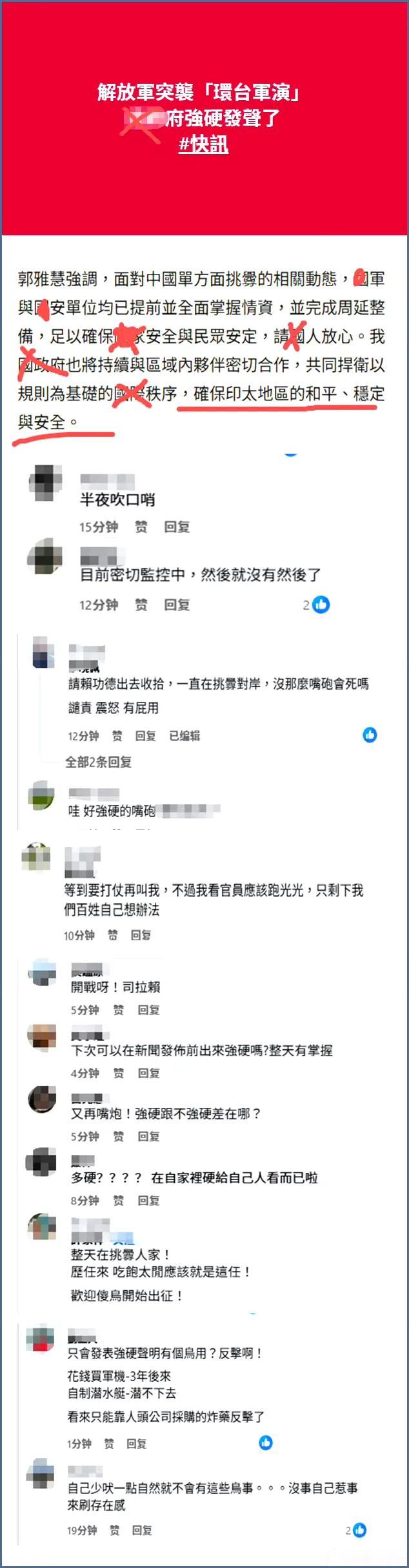 解放军环台军演,台湾有关新闻说,民进党强硬发声。 我点进去一看…… “目前密切监控中,我们要和平。” 然后……就没有然后了……