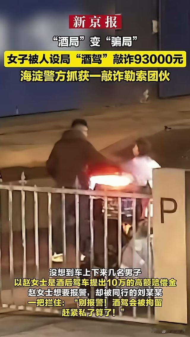 北京,赵女士开着豪车和男网友奔现,饭桌上对方热情劝酒,赵女士推脱不过就喝了一瓶,饭后赵女士想叫代驾,对方怂恿赵女士自己开车。赵女士没多想开着车去酒店,结果刚走没多远,就和一辆车发生了剐蹭,对方一下车,就指着赵女士说她喝酒了,要求赵女士赔10万私了。男网友也主动拿出7000元,还劝赵女士,如果报警了,她查出酒驾会留案底,赵女士害怕之下补齐了剩余的93000元。可第二天,赵女士越想越不对劲,一报警,男网友果然有问题! 据新京报报道,赵女士认识了一个男网友刘某某,刘某某资料填写的非常完整,言谈举止也颇为不俗。 赵女士和刘某某认识后,很快就对他产生了信任。 一次聊天中,赵女士随口提了一句,自己最近刚提了一辆进口车。 俗话说,说者无意听者有心,刘某某在和赵女士聊天中,推测出她家庭条件不错,对赵女士便更加殷勤了。 没多久,刘某某约赵女士见面,赵女士因对刘某某产生了信任,没有多想就答应了。 当天晚上,赵女士和刘某某相约在海淀区一家饭店见面,为了避免尴尬,刘某某还特意带了一个朋友陪吃。 当天晚上,赵女士和刘某某二人相谈甚欢,刘某某两个人一直劝赵女士喝酒,赵女士推脱不过,就喝了一瓶啤酒。 晚饭后,赵女士准备叫个代驾去酒店,可刘某某说,赵女士的酒店就在附近,开车过去也就几分钟,花那个钱不值当。 赵女士犹豫了一下,最后还是答应了。 让赵女士没想到是,车子刚开出没多远,侧面突然开过来一辆车,和赵女士的车发生了剐蹭。 赵女士赶紧下车查看,所幸剐蹭不严重。 可对面车辆下来了好几个大男人,他们一走到赵女士旁边,就吸着鼻子说赵女士喝酒了,还态度非常强硬的让赵女士赔偿10万块钱。 赵女士觉得他们是在讹人,掏出手机就准备报警,结果刘某某赶紧过来按住了她,说赵女士是酒驾,要是报警了就要拘留,还会留案底。 赵女士一时之间心乱如麻,刘某某主动掏出7000元钱,说要替赵女士垫付。 赵女士心里非常感动,想想前程要紧,最终还是咬牙付了剩余的93000元。 第二天,赵女士彻底平静下来,她细想昨天发生的事,越想越不对劲。 赵女士怀疑自己被刘某某做局了,于是立即报了警。 民警立即立案调查,通过调取案发现场和饭店的监控,以及和赵女士剐蹭车辆的行车轨迹等线索,民警发现,刘某某和对方驾驶员之间是认识的。 早在刘某某去见赵女士前,他就和驾驶员之间有过联系,而且,赵女士吃饭时,那辆车就一直在饭店附近徘徊。 不几天,参与本案的5人全部归案,他们承认,这起剐蹭事故是他们提前策划的,他们就是看赵女士条件好,想从她身上赚一笔。 刘某某等五人以“酒驾碰瓷”的方式骗取赵女士钱财,其行为构成敲诈勒索罪。 《刑法》第二百七十四条规定,敲诈勒索公私财物,数额较大或者多次敲诈勒索的,构成敲诈勒索罪。 刘某某等人在得知赵女士家庭条件不错且刚提进口车后,便精心策划了这场骗局,其目的就是为了从赵女士身上获取钱财。 在赵女士与他们的车发生剐蹭后,刘某某等人分工协作,以赵女士酒驾报警会被拘留留案底为由,迫使赵女士产生恐惧心理。 这种利用赵女士害怕酒驾后果的心理,对其进行精神强制,使其不敢反抗,从而不得不交出财物的行为,符合敲诈勒索罪中威胁和要挟的行为特征。 依据相关司法解释,敲诈勒索公私财物价值二千元至五千元以上、三万元至十万元以上、三十万元至五十万元以上的,应当分别认定为刑法第二百七十四条规定的“数额较大”“数额巨大”“数额特别巨大”。 刘某某等人向赵女士索要10万元,已达到数额巨大的标准,这意味着他们将面临更严厉的刑事处罚。 在这起案件中,刘某某、陪吃朋友以及与赵女士剐蹭车辆的驾驶员等五人构成共同犯罪。 《刑法》第二十五条规定,共同犯罪是指二人以上共同故意犯罪。 刘某某提前与驾驶员联系,安排车辆在饭店附近徘徊,各行为人之间存在明确的分工和协作,他们都明知自己的行为会发生危害社会的结果,并且希望这种结果的发生,共同实施了敲诈勒索赵女士的犯罪行为,应当按照他们在共同犯罪中所起的作用分别处罚。 目前,涉案五人均因涉嫌敲诈勒索罪被刑事拘留,等待他们的将是法律的严惩!