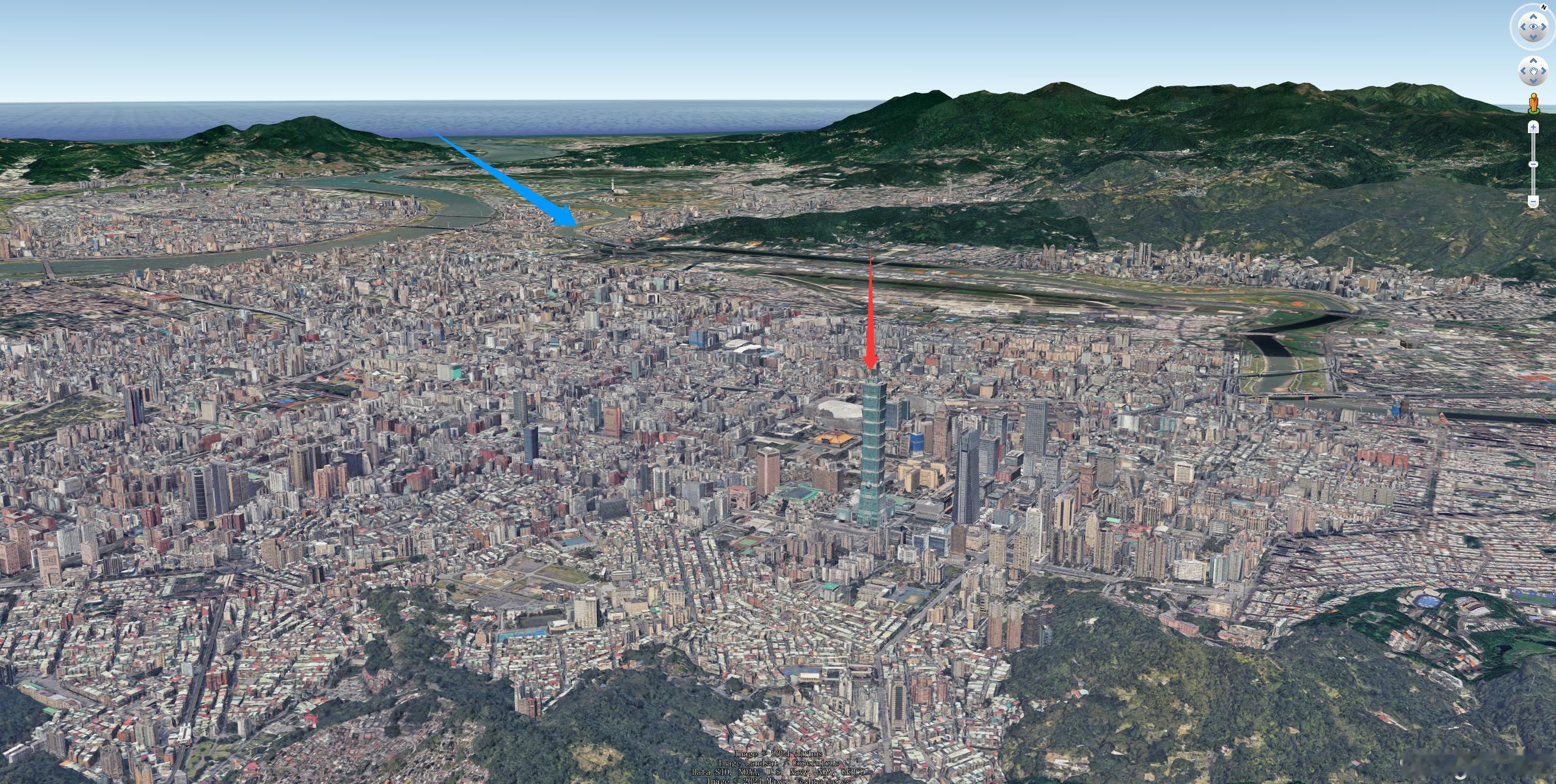凌晨1点42分,双尾蝎自西北向东南方向拍摄淡水河口和101大厦