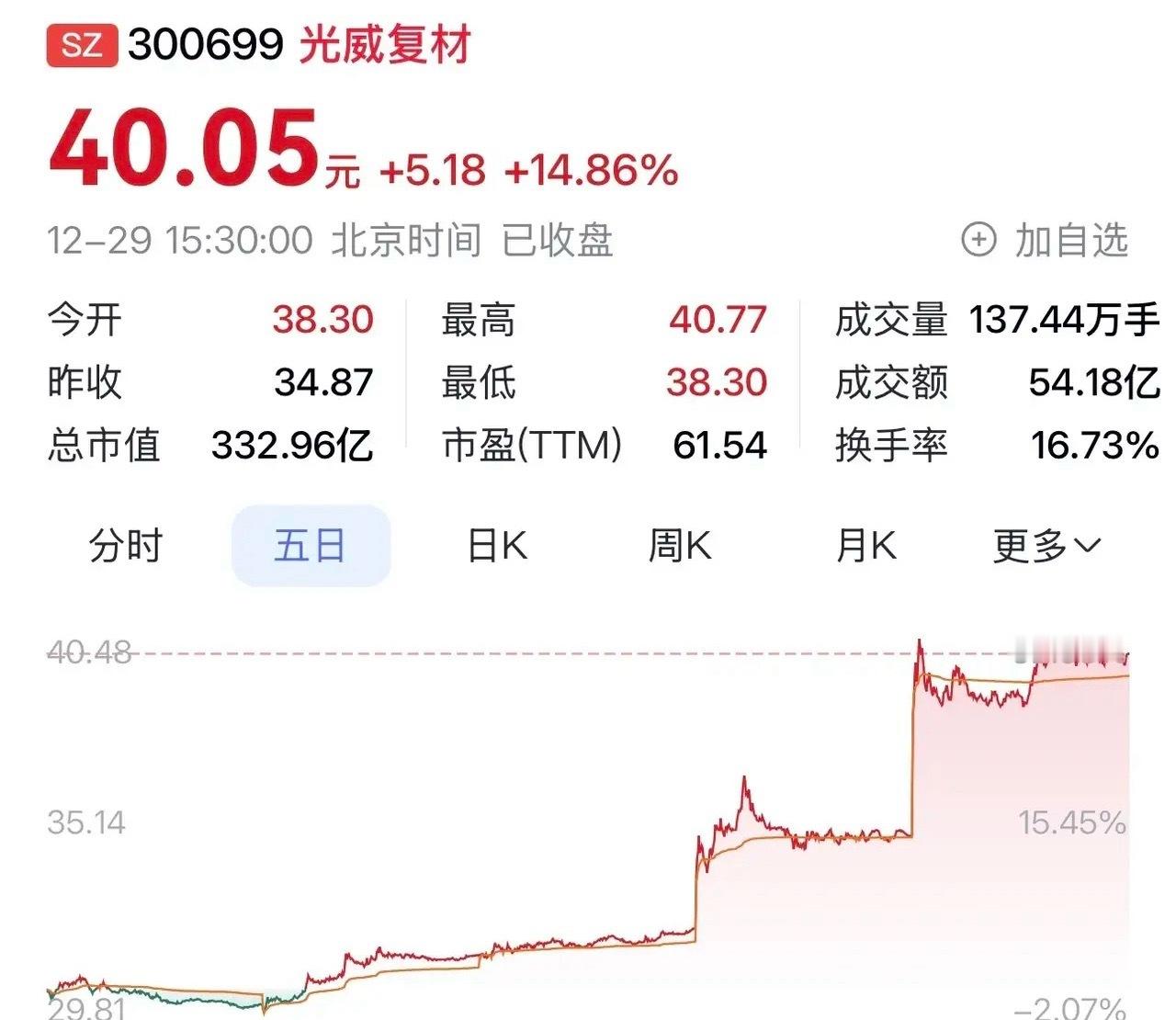 “光威复材:全产业链优势加持,乘航天低空东风迎发展新机”在当今科技飞速发展的时代,光威复材宛如一颗璀璨的明星,在商业航天、碳纤维、低空经济等多个前沿领域绽放着独特的光芒,构建起了令人瞩目的全产业链布局。在商业航天这一充满无限可能的领域,光威复材出了强大的实力与深厚的。从2025年12月15日互动易披露的信息来看,该公司已然成为固体动力箭体结构碳纤维的主力供应商。想象一下,在浩瀚宇宙的探索征程中,一枚枚搭载威复材碳纤维的固体动力火箭冲破云霄,其箭体结构凭借碳纤维的高强度、轻量化等卓越性能,确保了火箭在发射过程中的稳定与安全。同时,它还是卫星制造碳纤维的核心供应商,商业航天的配套服务全面覆盖了发射及卫星环节。就好比为卫星打造了一副坚固且轻盈的“骨骼”,让卫星能够在太空中精准地执行各项任务,为人类探索宇宙的脚步提供坚实支撑。在新型号装备领域,光威复材同样成绩斐然。依据2025年10月27投资者关系活动记录表,新型号装备碳纤维产品的发货量呈现出逐季递增的良好态势。特别是航天用纤维,其需求逐渐回暖。这一变化背后,是市场对光威复材产品品质的高度认可。以某新型航天装备为例,在研发过程中,对材料的性能要求极为严苛,光威复材的MJ系列纤维凭借其出色的耐高温、高强度等特性,成功通过了层层考验,成为该装备不可或缺的关键材料,有力推动了我国航天装备的升级换代。从产业布局的角度来看,光威复材拥有令人羡慕的碳纤维全产业链优势。根据2025年半年度报告,该公司的产品应用范围极为广泛,不仅涉足国产大飞机领域,为飞机的机身、机翼等关键部位提供高性能的碳纤维材料,提升飞机的整体性能与燃油经济性;还在船舶制造中发挥重要作用,使船舶更加坚固耐用、航行更加高效;在氢能领域,其碳纤维产品为氢能的储存与运输提供了安全可靠的解决方案。通过这种装备与民用协同发展的格局,光威复材实现了资源的优化配置与产业的多元化拓展。在低空经济这一新兴领域,光威复材也,大展拳脚。结合2024年年度报告及2025年半年度报告,该公司为低空装备提供了一站式的涵盖碳纤维、预浸料以及复材结构设计制造等多个环节。尤为值得一提的是,光威复材参与了国内首款取证四座电动飞机的配套工作。在这款具有里程碑意义的电动飞机研发过程中,光威复材的团队与飞机制造商紧密合作,从材料的选择到结构的设计,每一个环节都精益求精。最终,凭借其优质的碳纤维材料与精湛的复材制造工艺,为这款电动飞机的成功取证与顺利飞行立下了汗马功劳,开启了我国低空出行的新篇章。
