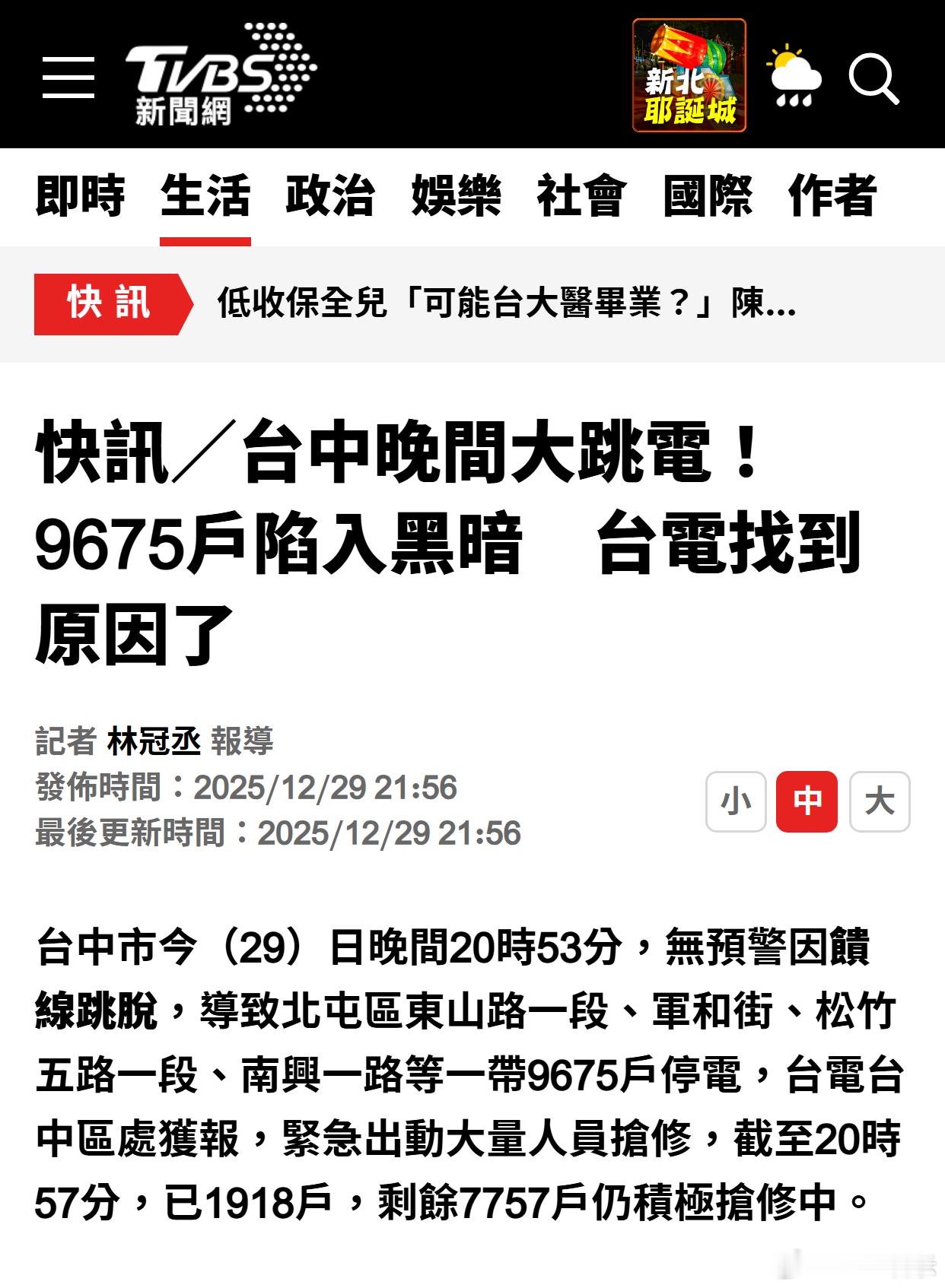 台中晚间大跳电!