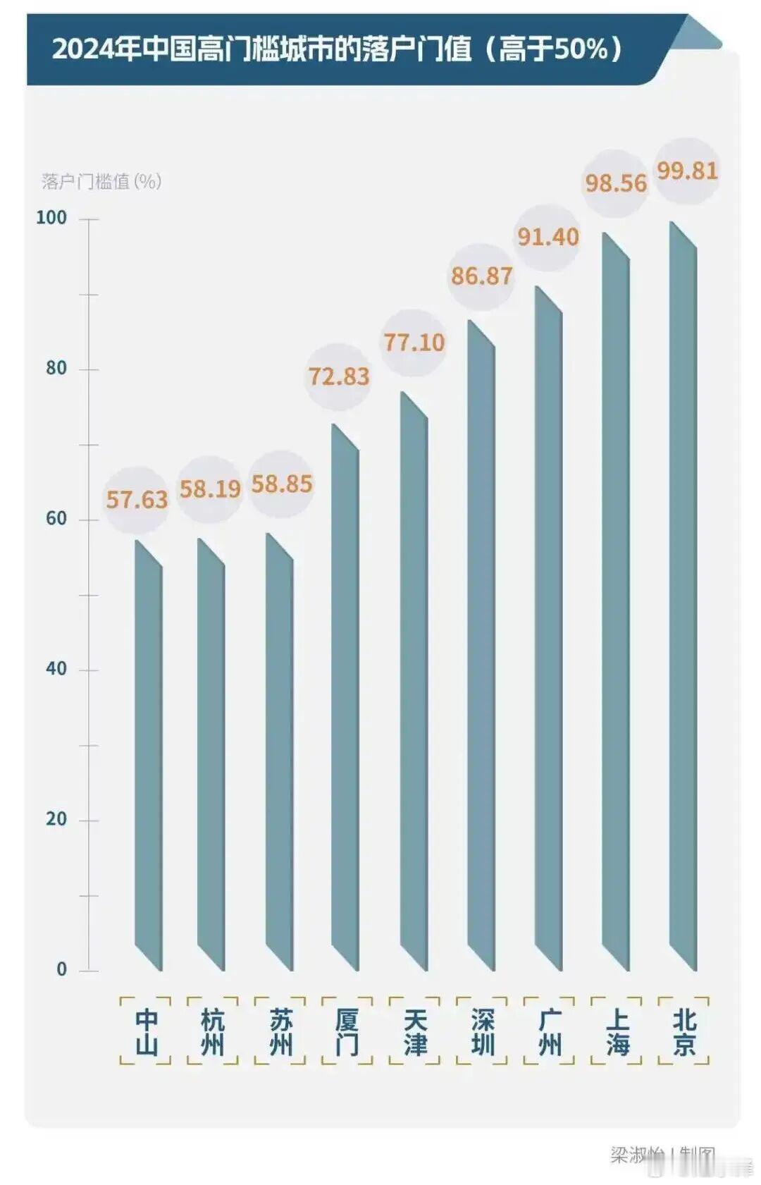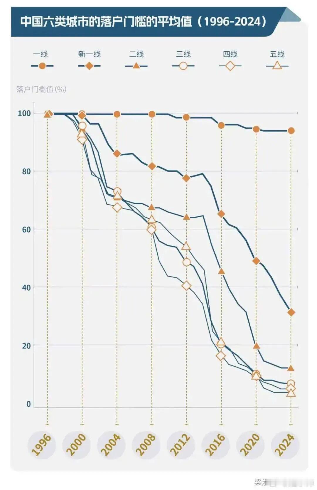官宣!600多座城市,要放开落户了摘自 凯风 国民经略户籍门槛,正在批量“消失”。90%以上城市,都要放开落户。据报道,国务院拟放开放宽除个别超大城市外的落户限制,推动转移人口社保、住房保障、教育享有同等权利。这意味着,除“个别超大城市“之外,几乎所有城市都要放开落户限制,“零门槛落户”即将遍地开花。根据《中国统计年鉴2025》,我国共有600多座城市,涵盖直辖市、副省级市、地级市、县级市,而县城则不属于城市。按照城区人口规模不同,可分为“超大-特大-大-中小城市”,超大城市涵盖北上广深成渝津杭等地。目前,省会之外的一般大城市和中小城市,早已是“裸奔“状态,户籍门槛几乎不复存在。正如国务院报告所强调的,城区常住人口300万以下城市落户限制基本取消。山东大学张吉鹏团队在《经济学(季刊)》发布的论文,也通过量化分析得出类似的结论:全国落户门槛加权均值从1999年的98.8%下降到了2024年的12.6%。总体来看,三四五线城市户籍门槛不足10%,48.49%的城市实现零门槛,17个省份全域低门槛。当普通地级市、县级市户籍门槛不复存在,下一步就轮到二线弱省会和非省会经济强市了。“个别超大城市”,都有谁? 新一轮户籍松绑,放开为原则,不放开为例外,被排除在外的只有“个别超大城市”。衡量城市大小,看的不是全市人口,而是城区人口。城区人口超过1000万的被视为超大城市,500-1000万的为特大城市,300-500万的I型大城市,以此类推。作为城镇规模的金字塔尖,超大城市只有10座:北京、上海、广州、深圳、重庆、成都、天津、武汉、杭州、东莞。虽然同为超大城市,但人口基数存在差异,经济、人口、资源承载力有别,户口含金量大相径庭。根据相关规划和政策精神,无论其他城市如何松绑,京沪都是最后的堡垒,广深津其次,杭州再其次,成都、重庆、武汉、东莞则相对宽松。这与《经济学(季刊)》论文的结论基本一致,落户门槛仍高于50%的只剩下9座:北京、上海、广州、深圳、天津、厦门、苏州、杭州、中山。由于研究周期存在一定滞后,目前中山已基本放开落户,厦门租房也可落户,真正高门槛的所剩无几。落户门槛越来越低,足以说明户口含金量越来越低,绝大多数城市的户口都将失去价值。北上广深津,何以成了例外?落户门槛之高,京沪独占一档,广深津其次,苏杭等地再其次。京沪落户门槛最严,也说明其户口含金量独一无二,远非其他城市可比。要知道,哪怕是广深,大专生也能直接落户。但在京沪,哪怕是硕士博士,也要受到“进京指标”或“积分落户”的制约。京沪之所以最严,核心原因在于,户口背后附着了教育、医疗、养老、住房等福利,仅高考录取率就足以让无数人趋之若鹜。同时,京沪已基本逼近人口天花板,北京以2300万目标,上海则是2500万,增长空间所剩无几。早在10多年前,京沪就已不追求人口增长,反而率先推动“减量发展”,主动遏制人口流入。可以看到,最近几年,京沪人口罕见负增长,而广深等其他一二线城市仍在保持增长。广州、深圳、天津为第二档,广深是城市地位的体现,天津主要得益于其高考优势。在广深,只有大学生及高技能人才,才有无条件落户资格,一般外来人员落户,只能通过积分入户。深圳积分落户名额每年只有1.5万个,非户籍人口超过1100万,近年入围最低分都在300分以上,竞争之激烈可见一斑。天津最为特殊,虽然经济竞争力不复以往,但高考优势一骑绝尘,堪称户口最大的含金量。天津985高校录取率超过5%,211高校录取率近7%,本科录取率超70%,与京沪齐头并进。至于杭州、成都、苏州等地,过去几年落户门槛一降再降,外围区域基本上零门槛,中心城区离零门槛只有一步之遥。日前,成都发布落户新政,在中心城区,只要“居住证+3年社保”即可直接落户,不必买房,不用大学学历等。可见,在不远的将来,除了北上广深津,所有城市落户门槛都将“名存实亡”。为何都在抢着放开落户?就在10多年前,户籍还是横亘在无数人脚下的一道门槛,为何如今开始逐步消失了?从宏观环境看,创新驱动、消费驱动取代要素驱动、投资驱动,政策导向正在从“投资于物”转向“投资于人”。新的共识正在形成:人口不是负担而是资源,人不只是生产力,也是创新力和消费力。从城市竞争看,中国城市发展面临“两个转向”,大规模增量扩张时代结束,人口增长不再是常态。当超大特大城市放开户籍限制,意味着抢人大战将会更加白热化。一个突出信号是,浙江等地开始发钱抢大专生,这在历史上是头一遭。从政策导向看,人在流动,土地指标和财政资金,同样要跟着流动,过去按照户籍分配的模式早已不合时宜。最近多个国家文件均强调“人地钱挂钩”机制,表示加强对人口流入地的政策支持。可见,能不能抢到人,能不能留住人,成了新一轮城市竞争的关键。人口关乎扩大消费,关乎房价等资产价格,同样关乎社保和转移支付的基本盘,关乎城市基建扩张的可能。城市与人的关系,也将发生易位。过去是城市挑人,未来则是人选城市。择城而栖,选好城市,越来越重要。