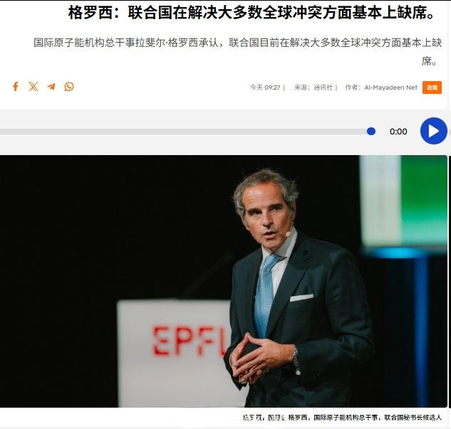 国际原子能机构总干事、联合国秘书长候选人拉斐尔·格罗西表示,联合国目前在解决大多数全球冲突方面基本上缺席,该机构应该重新发挥这一作用。