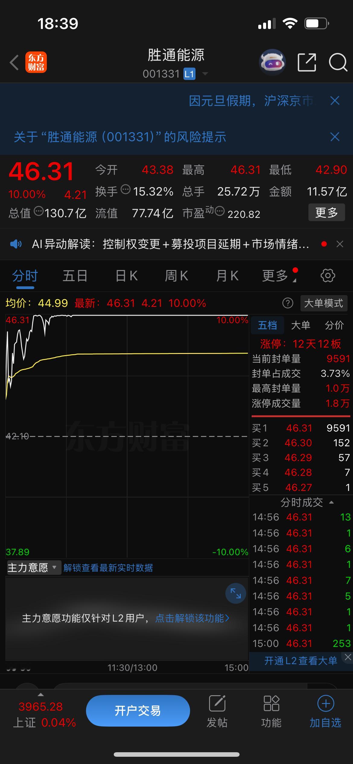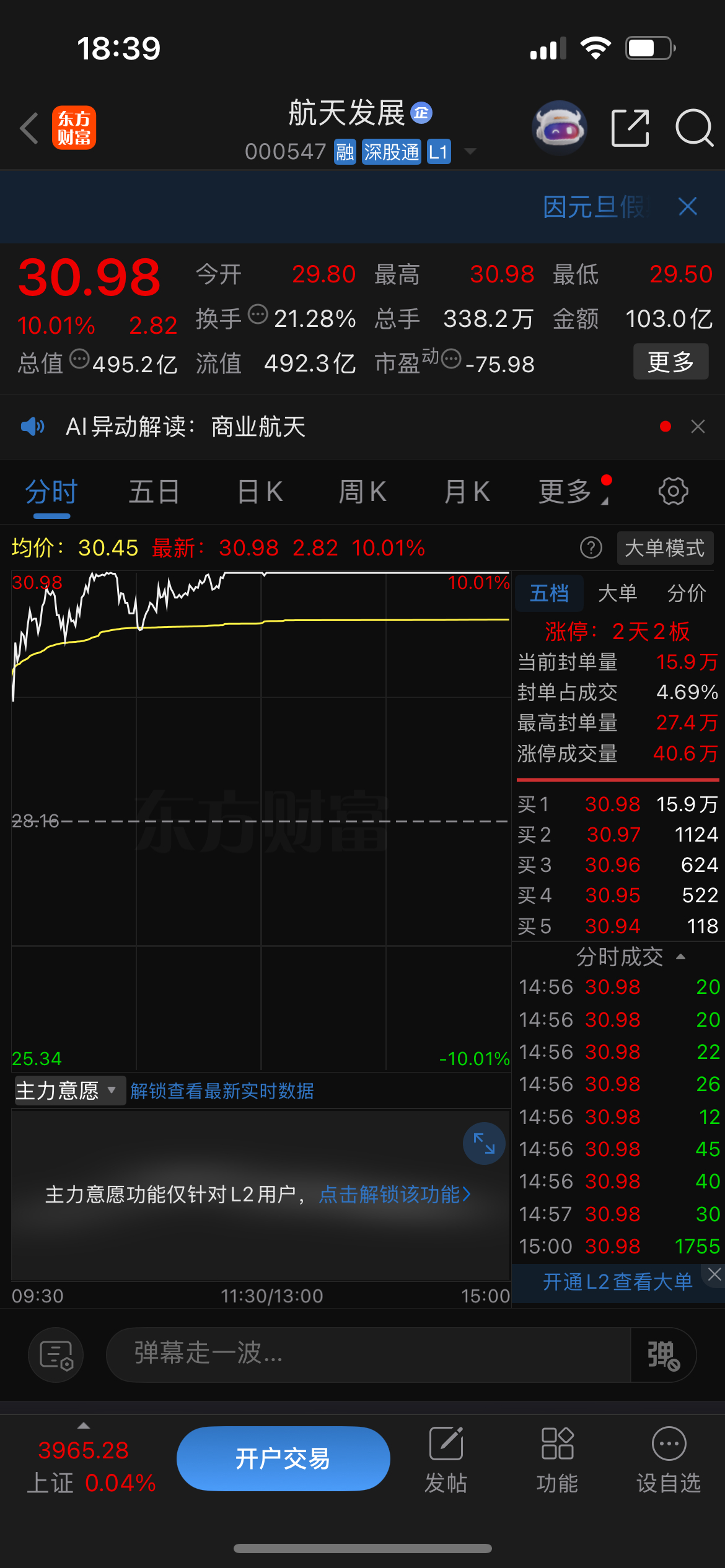明天看盘要点1.胜通能源12连板,成交量与上周五差别不大,目前市场最高板,关注明天是继续分歧断板还是转强加速。2.航天发展涨停,神剑股份8板,中国卫星尾盘涨停4连板,商业航天关注这三是股票的走势,看明天是分歧还是继续加速。3.平潭发展、海南发展、鹭燕医药、浙江世宝,各板块的龙头,连续抱团上涨,关注明天是继续抱团上涨还是出现下跌调整。