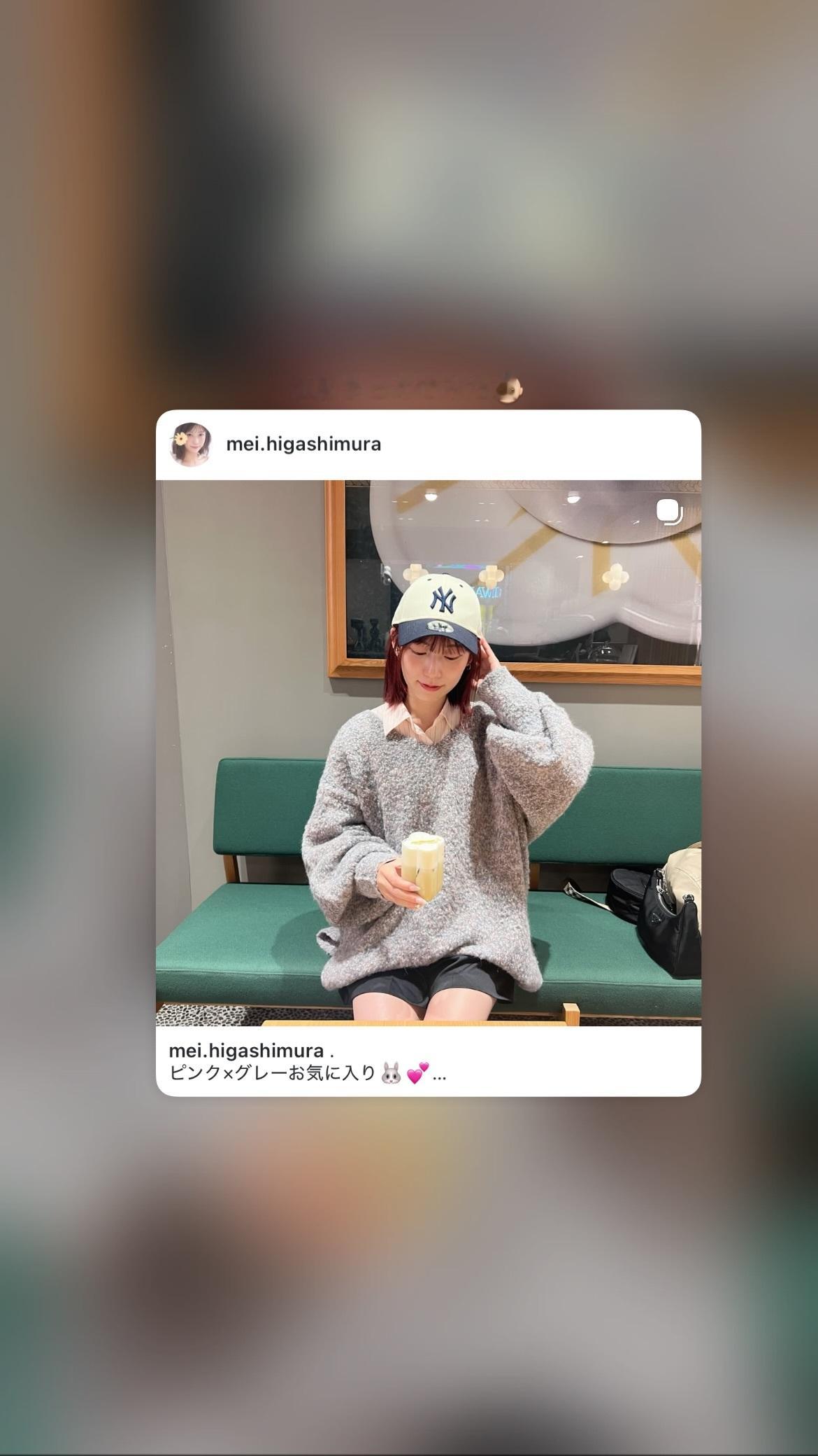 東村芽依🍓「ピンク×グレーお気に入り🐰💕最近の私服詳細🏷️」meigram