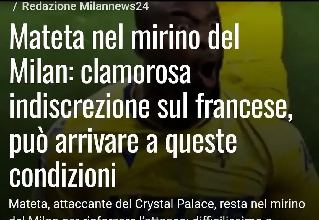 水晶宫王牌标价3500万! 米兰盯上1米92大中锋马特塔,冬窗砸钱就能扛走。英超8球3助攻,吉鲁替身首选。水晶宫跟队记者放话:3000万欧可谈,先租后买也行。斯图加特吉拉西才1750万,但米兰嫌他太脆。球员亲口说想踢意甲,夏窗更稳,西汉姆也来抢。