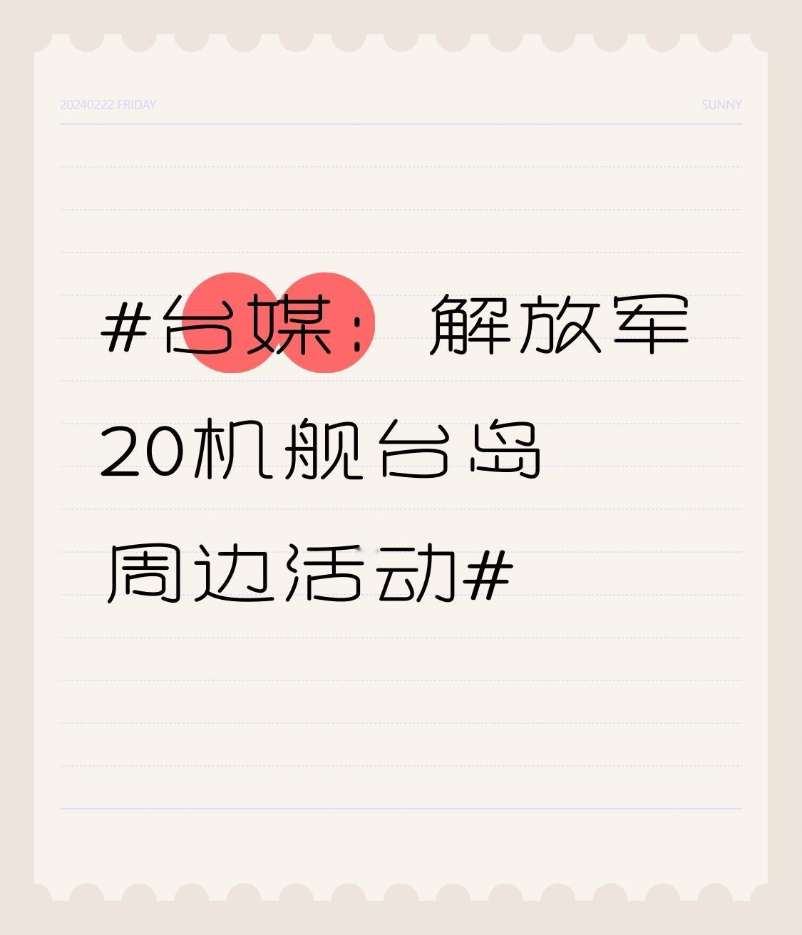 台媒又开始紧盯解放军动态了。12月26日6时至27日6时,有13架次军机、7艘次军舰在台岛周边常态化活动,27日0时大陆运载火箭飞行路径还穿越台岛上空。此前21日晚,也有20架次解放军军机在台海周边活动,其中9架次越过所谓“海峡中线”。 美国媒体老炒作大陆对台军事压力,可哪有什么“海峡中线”,台湾本就是中国领土。解放军的行动是捍卫国家主权的常规操作,是对外部干涉和“台独”挑衅的有力反制。祖国统一是必然大势,这谁也阻挡不了!