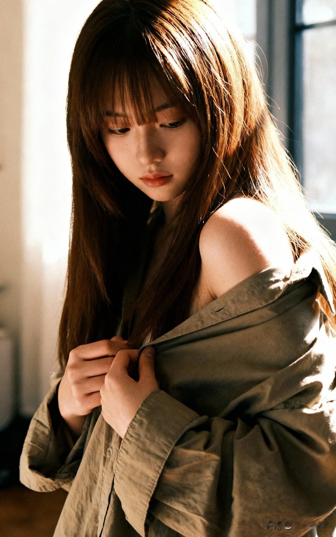 秋日暖阳下,温柔少女与毛绒外套的完美搭配