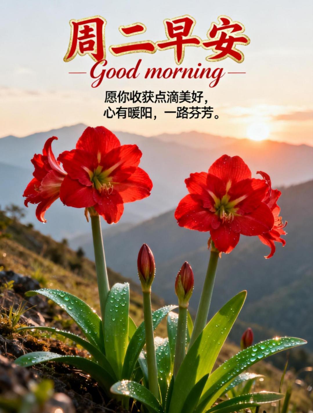 🌄晨光温柔洒在身上,好运悄悄藏在身旁。新的一天开始,愿你眼里有光,心中有爱,脚下有路,在年末的尾声里,所求皆如愿,收获满满惊喜!周二愉快!😄💖