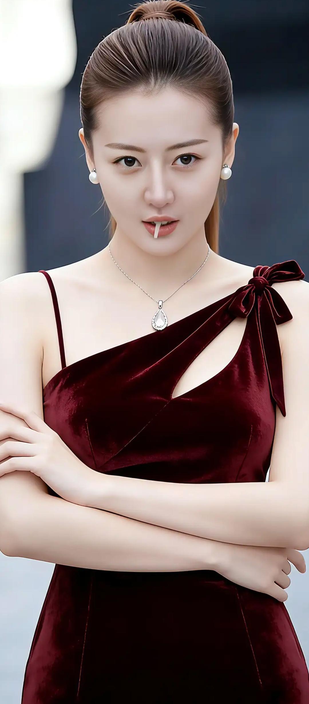 优雅红裙,精致妆容,气质迷人!
