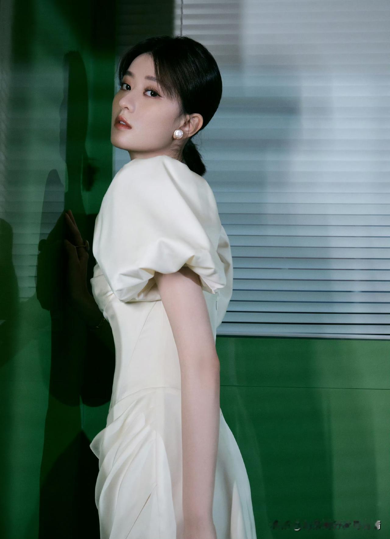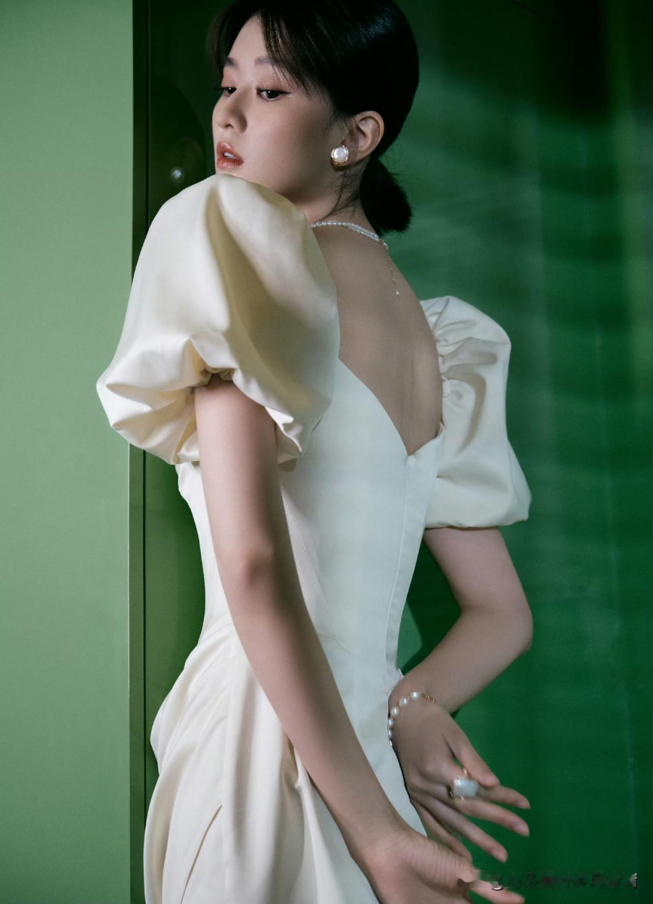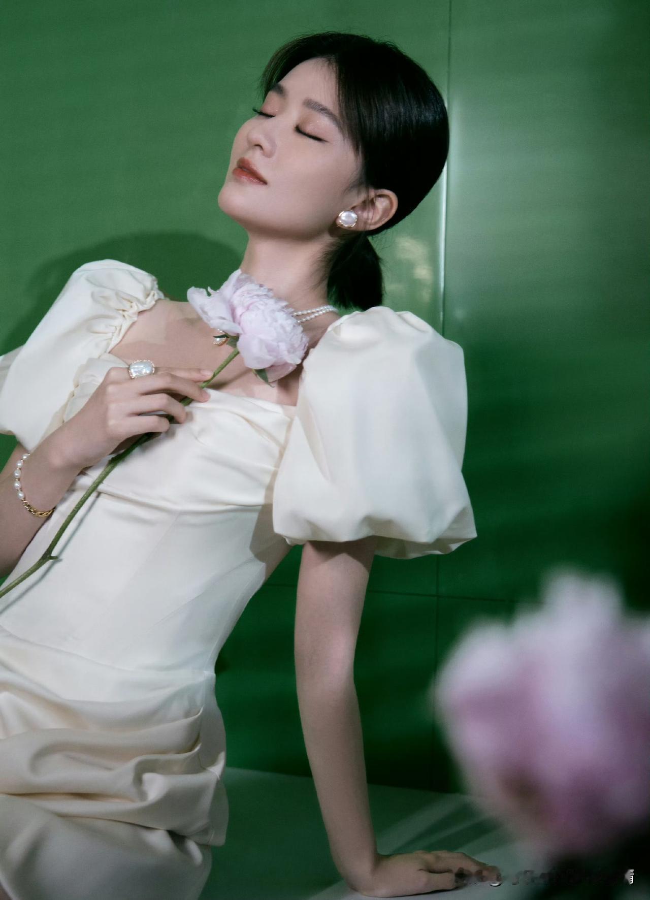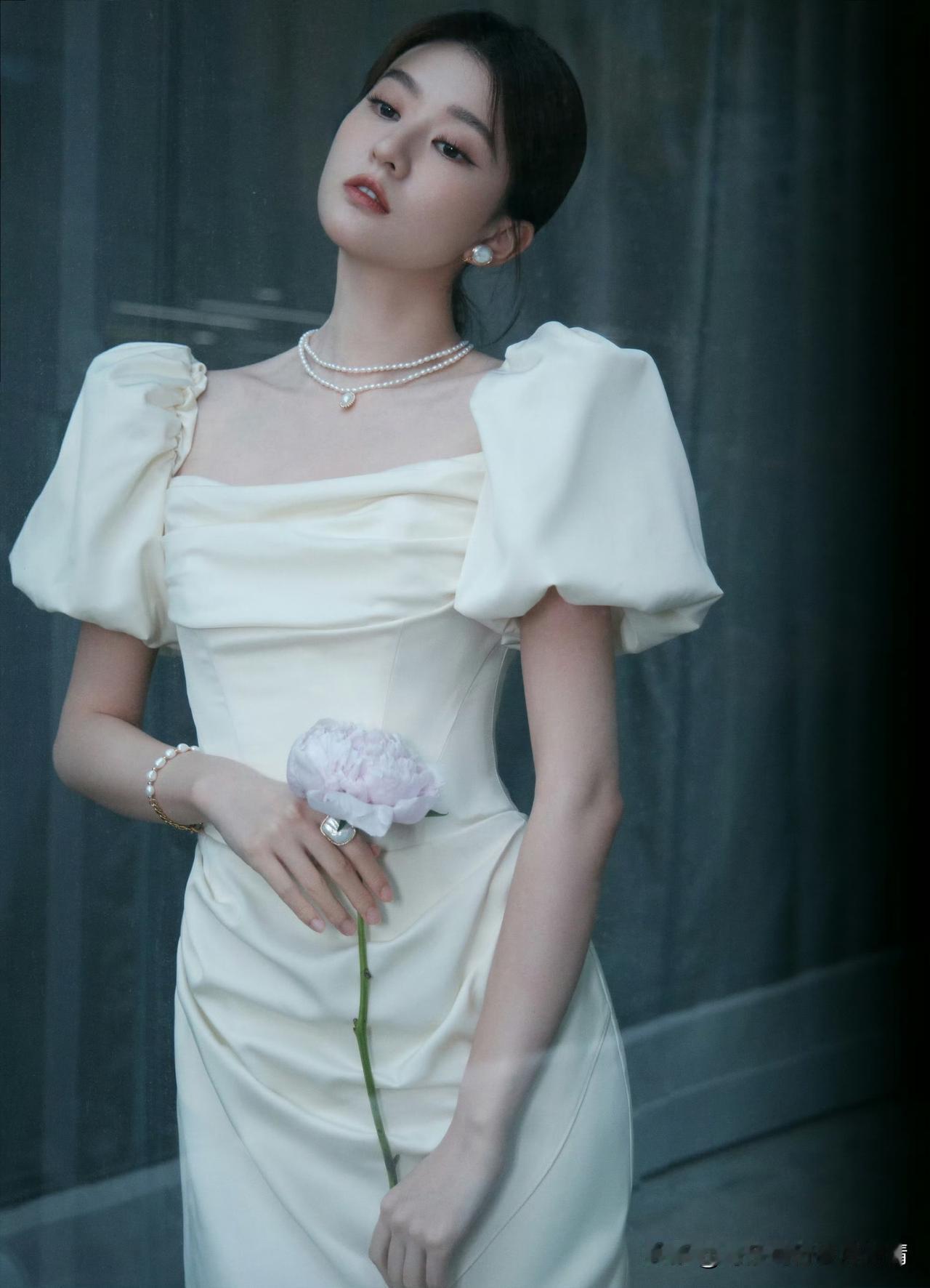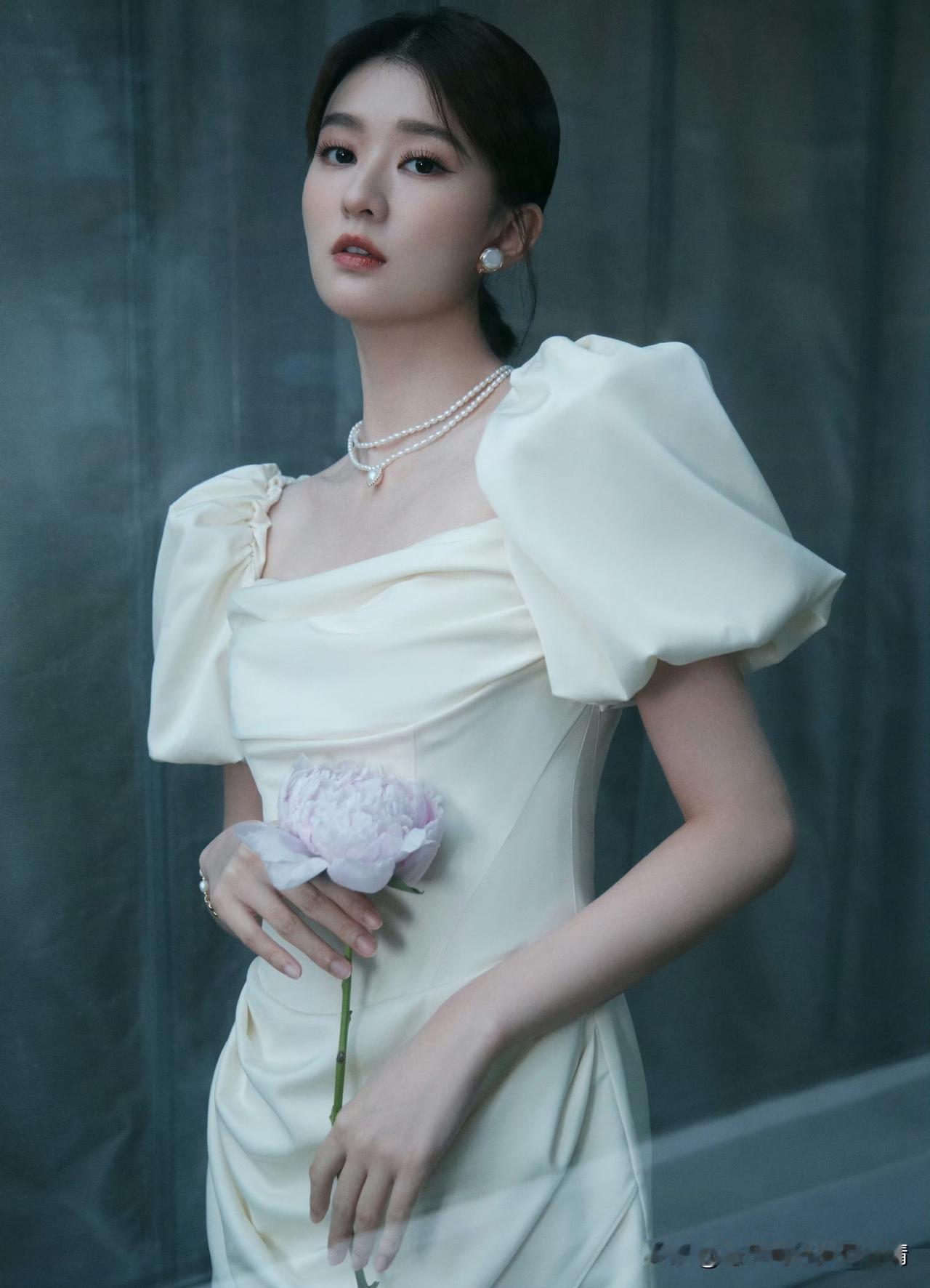 乔欣一袭白裙出镜,缎面材质勾勒曼妙身姿,泡泡袖设计添复古又柔美。 照片中乔欣珍珠配饰点缀颈间耳畔,与手中芍药花相映成趣。绿墙灰影作衬,她眸光流转间,将优雅与灵动揉成馥郁的氛围感,一颦一笑皆是心动篇章。