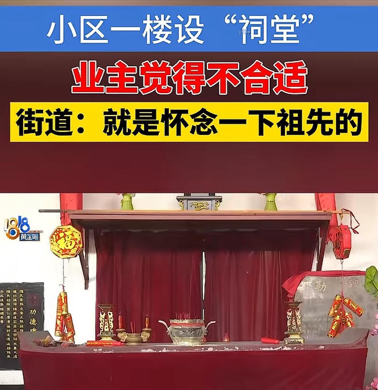 浙江宁波,女子一直以为自家楼下的3间商铺开的是医馆,后来她发现不对劲了,商铺里面不仅有牌位,还有人过来祭祖,才知道开设的是祠堂。女子不干了,认为这个地方人来人往,将祠堂开设在这里,影响自己的生活,于是,找到街道讨要说法。街道负责人称,就是祭拜一下祖先,没搞白事等封建迷信活动。女子对此还是不能接受,找来媒体曝光此事,让网友给评评理。 朱家苑小区的杨女士从未料到,自己楼下那间看起来普通的商铺,竟隐藏着这样一个秘密。 平时,小区居民都以为这三间连在一起的门面是一家医馆,玻璃门上贴着“尊老爱老”“健康康养”等标语,看起来像是社区医疗或康复场所,大家久而久之也就习惯了,门紧闭、没人光顾,也没多想。 直到今年冬至,这种平静被打破,杨女士在楼下散步时看到几个人提着水果、香烛,匆匆进入那间“医馆”,起初,她以为有人来看病或者探望亲友,好奇心驱使她悄悄跟到门口。 透过门缝和紧闭的窗帘,她看到的景象让她吃了一惊——这根本不是医馆,屋里正中悬挂着一块厚重牌匾,上面写着“陈氏大德堂”,牌匾下是整齐的“陈氏大德始祖神位”。 香台上烟雾缭绕,蜡烛闪着微光,墙上挂着家族训诫和家风条幅……显然,这是一座小型祠堂。 门外是现代化的宣传标语,门里却是传统庄重的祭祀,这种反差让杨女士顿时心里一紧。 她开始担心,一旦经常祭祖或者举办红白喜事,噪音、烟火以及来来往往的人流,会不会影响整个楼层的正常生活。 为了弄清情况,杨女士找到街道办,但得到的答复让她觉得自己像在“无理取闹”。 街道工作人员解释,这家商铺原属于旧村落连城村,拆迁时村民大多姓陈,老宗祠无法随村落一起搬迁,村民们不舍得丢掉这些记录家族历史的遗物,于是把它们搬到商铺里,并立碑说明缘由。 负责人还强调,这里并非经营性的白事场所,也不涉及封建迷信,平时大门紧闭,仅在冬至、清明等特定节日,陈家后人来祭拜祖先,流程简短,就像家庭扫墓一样,不会造成扰民。 听上去似乎合理——这是延续乡愁和宗族凝聚力的方式,但法律赋予业主的权利与宗族传统之间,产生了冲突。 商铺属于建筑物专有部分,但门前的通道和公共区域是全体业主共有,把商铺改作祠堂,不只是内部装修的变化,更涉及使用性质的改变。 设想一下,如果不受限制,今天祭祖,明天办红白喜事,楼上几百户居民的日常生活该如何保障?即使街道承诺“平时不开门”,但口头保证在实际噪音、烟火和人流影响下,显得很有限。 依照《民法典》,业主行使权利不得危及建筑安全,也不得损害其他业主合法权益。 将原本用于经营的商铺改作具有公共祭祀性质的场所,应当经过参与表决的业主人数和面积达到法定比例的同意才可实施,显然,这并非陈氏族人或街道一句“别太敏感”就能解决的事。 目前,这块挂着“大德世家”招牌的商铺依旧紧闭,媒体到访时,只能隔着玻璃看到里面整齐的神位、香台和供品。 街道方面仍在协调,试图在陈氏族人的情感寄托,和住户的生活权益之间找到平衡。 朱家苑的争议表明,在现代社区里,处理传统习俗与物业管理之间的关系,从来不是简单腾出几间空房那么容易,居民的日常生活与文化情感,在这种微妙的冲突中,需要仔细权衡与协调。 (来源:1818黄金眼)