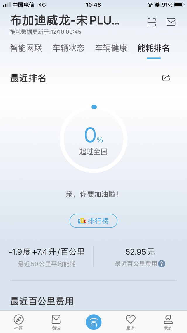 感觉油耗有点儿高 深圳城市道路,每天上下班总共十公里左右,4个人,现在这种天气偶尔会使用空调,提车到现在400块油钱(当时油价应该是7.5元左右一升)加一次充电。 现总里程722,剩余续航256,油耗7.4L,全国排名垫底,车型是51尊荣 各位车主,大家觉得油耗正常吗?