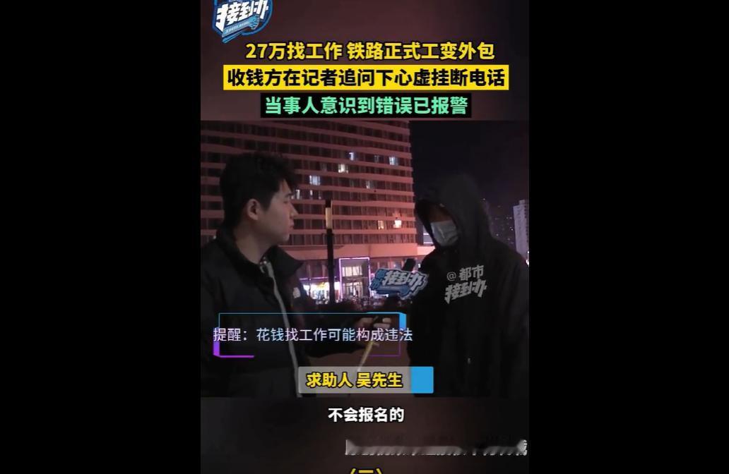 近日,河南吴先生为给毕业弟弟找铁路正式工,轻信网上招聘承诺,先付20万中介费(总价27万),入职后却发现是无需花钱的铁路外包装卸工。 收钱方回应含糊且拒谈费用,郑州局相关招聘已结束,部门正介入调查。 花27万买“铁路铁饭碗”,最终只换来外包搬运工,吴先生的遭遇既让人气愤又让人揪心。 受害人吴先生一家的遭遇戳中了无数求职家庭的痛点——毕业求职的焦虑,以及对“铁饭碗”的过度执念,让他们失去了基本的判断。 弟弟刚毕业没找到工作,作为哥哥的吴先生急于帮家人解决难题,这份心情不难理解。 再加上骗子展示的“成功案例”,看似靠谱的承诺,瞬间击中了他想走捷径的心理,觉得花点钱就能让弟弟拥有稳定工作,这笔“投资”值得。 可他忘了,正规国企、铁路系统的招聘,从来都是公开透明、层层筛选,哪有花钱就能内定的道理? 更让人惋惜的是,吴先生从头到尾都没核实信息真实性。 现在,20万对普通家庭来说,可能是多年的积蓄,就这样打了水漂,不仅没帮弟弟找到好工作,还让家庭陷入经济困境,这种身心与财产的双重打击,想想都让人心疼。