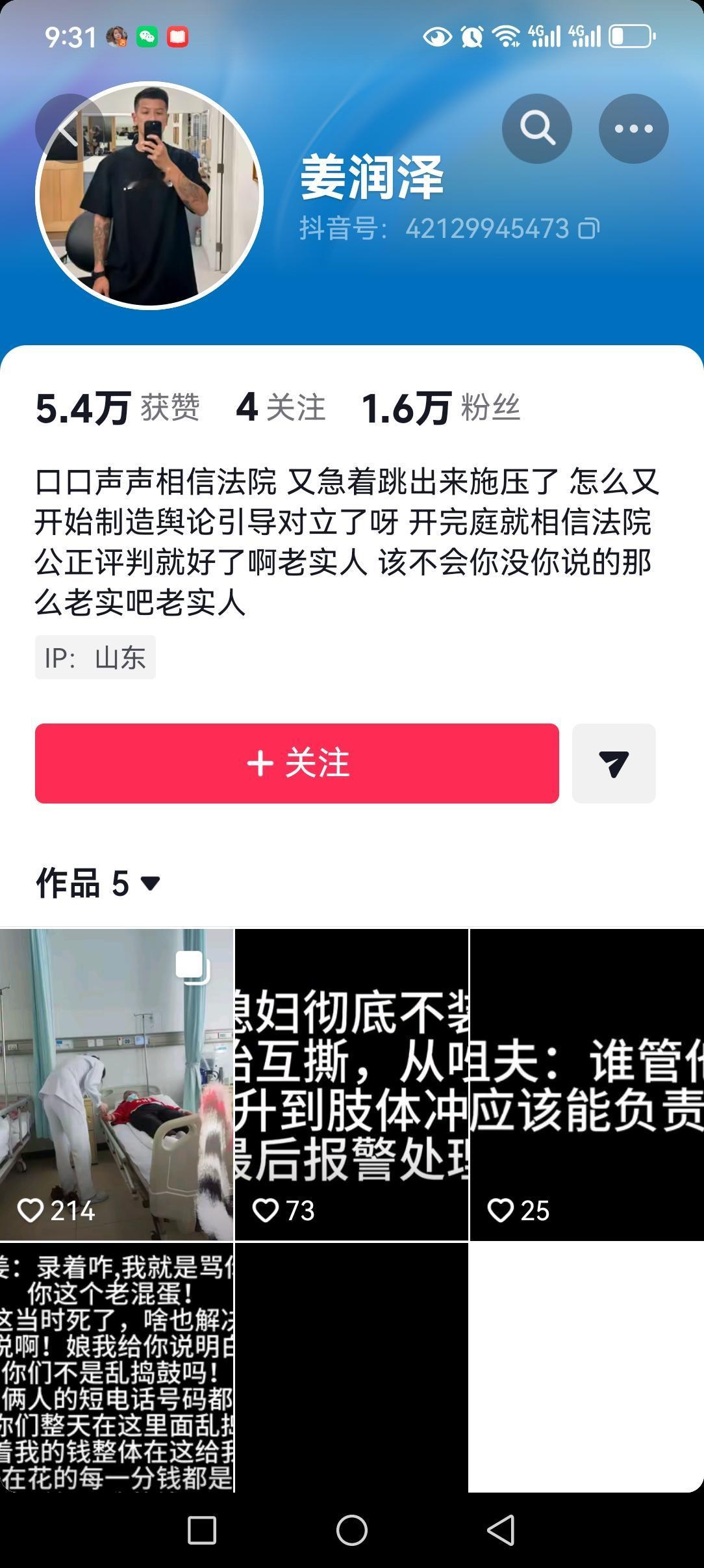 两儿非亲生姜洪涛的大儿子更新了几个作品。 作品里有几段录音,还是他爷爷奶奶住院的视频和缴费清单。 不知道他发这些作品是何用意? 原来以为是现在的事情,仔细一看才知道缴费清单还是去年五月份的。 本来他家的事情在网络上都快销声匿迹了,没有想到他又送来了一波热度。 难道这孩子毕业了没事干了? 他发的录音说的家乡话,也听不懂,大概就是财产纠纷。 他们家的官司也没了音讯,不知道最后到底是怎么判的。难道就这样虎头蛇尾,不了了之吗?