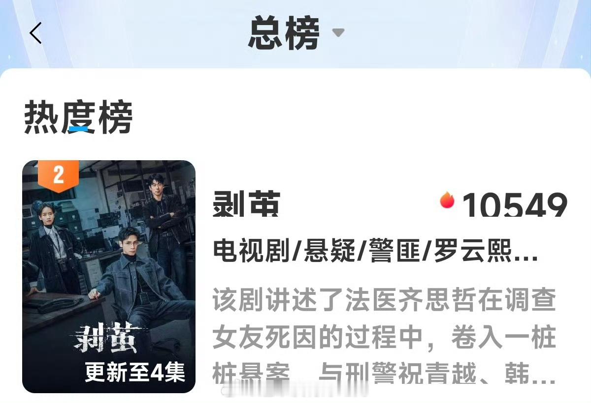 罗云熙剥茧2025年优酷白夜剧场首日热度第1️⃣